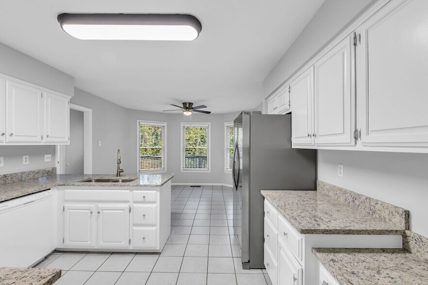 Quiet Neighborhood, back yard privacy with row of trees! Fenced back yard, back patio deck, stove, dishwasher & refrigerator, large kitchen, vaulted ceilings, wood burning fireplace, 3 bdrms, 2.5 baths, 2 car side entry garage, located on a private cul-de-sac-lot in Indian Springs.