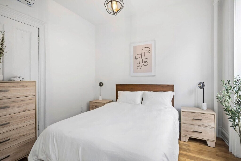 Welcome to this beautifully renovated 2-bedroom apartment in a classic Chelsea brownstone. Featuring a brand-new kitchen, in-unit washer and dryer, and modern amenities like split-unit AC and streaming TV services, this fully furnished space is the perfect blend of historic charm and contemporary convenience. Located just moments from top dining, art galleries, and the High Line, with easy subway access to the rest of NYC. Experience brownstone living in this newly renovated 2-bedroom, 1-bath apartment in Chelsea. The thoughtfully designed space includes a fully equipped kitchen with modern appliances, a cozy living area with a TV featuring Netflix, Amazon Prime, and YouTube TV, and a dining area for gathering. Both bedrooms offer comfort with plush bedding and ample storage. The apartment is complete with high-speed internet, a coffee maker, toaster, and an electric kettle for added convenience. Nearby dining options include TAO Downtown, Loulou, Da Andrea Chelsea, and Eataly. Whole Foods and Trader Joe’s are within walking distance. Close to cultural landmarks such as The Met, The Museum of Modern Art, and The American Museum of Natural History. Chelsea is a vibrant neighborhood located in the heart of Manhattan, known for its trendy art galleries, fashionable boutiques, and exciting nightlife. The neighborhood's most iconic attraction is the High Line, a 1.5-mile elevated park offering stunning views of the Hudson River and city skyline. Chelsea is also a major hub for contemporary art, featuring renowned galleries like Gagosian Gallery and David Zwirner Gallery. In addition to its artistic and cultural appeal, Chelsea is home to Chelsea Market, an indoor food hall with diverse dining options, and upscale shopping destinations. The neighborhood combines historic charm with modern amenities, making it a perfect place for visitors to experience NYC like a local. Chelsea offers excellent transportation options for easy access to the rest of NYC: 1 Train at 18th St and 7th Ave, L, A, C, E Trains at 14th St and 8th Ave, multiple bus routes including M11, M14A/D, M20, and M23-SBS, Citi Bike stations for bike rentals throughout the neighborhood, and ride-hailing services like Uber and Lyft are widely available. Washer and dryer available in the building. [SI]