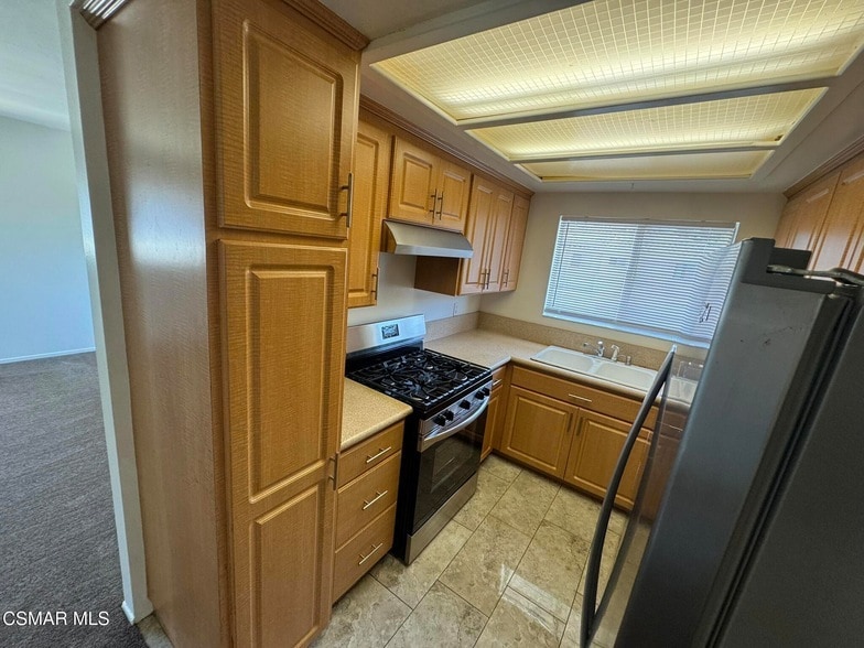 JUST MINUTES FOR THE BEACH! Step into comfort and convenience with this beautifully maintained 2-bedroom, 1-bath upstairs condo nestled in the vibrant heart of Port Hueneme! BRAND NEW CARPET and BRAND NEW PAINT throughout. The cozy kitchen features stainless steel appliances including a refrigerator and brand-new stove. Spacious bathroom with a single vanity and shower/tub combo. The 2 large bedrooms offer comfort and flexibility, with one of the bedrooms having a walk-in closet. Community Laundry Room, Community Pool. 1 parking spot in shared 2 car garage and 1 assigned parking spot in front of 2 car garage. Located just minutes from sun-kissed beaches, scenic parks, and the Channel Islands Harbor, this charming home offers a perfect blend of relaxed coastal vibes and modern amenities.