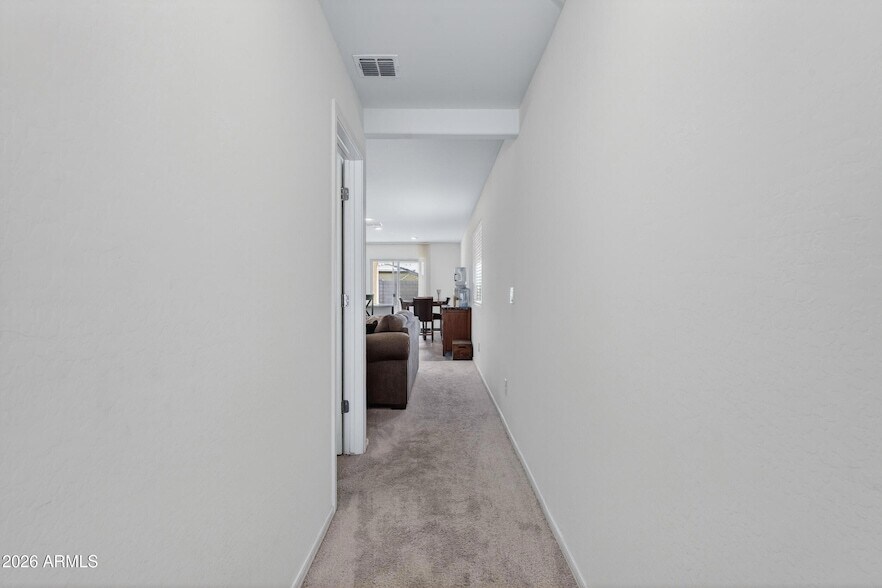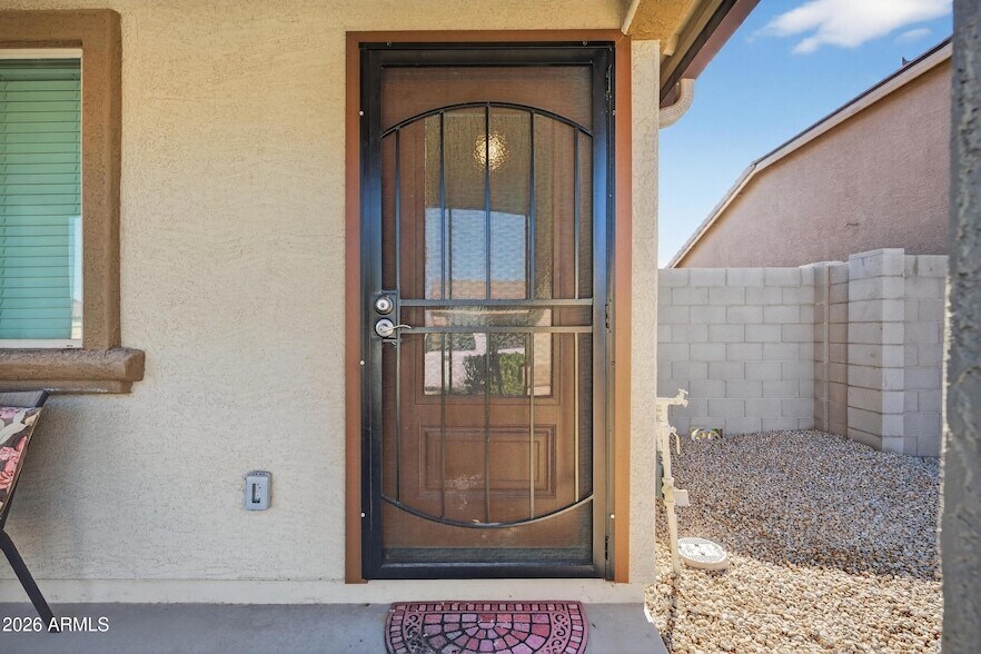 Beautiful home built in 2023 features 3 bedrooms, 2 bathrooms, and a 2-car garage. This Home showcases a front porch, open-concept layout, luxury vinyl plank floors, neutral carpet, neutral paint, and ceiling fans in every room. Solar panels are paid by the landlord and generate monthly savings for you. Eat-in kitchen with expresso cabinets 42'' cabinets, granite counters, pantry, stainless steel appliances, and breakfast bar. Primary suite has large walk-in closet, walk-in shower, and granite vanity. Large backyard with covered patio. Centrally located home is near schools, parks, restaurants, shopping, entertainment, I-10, MC 85, and historic downtown Buckeye.