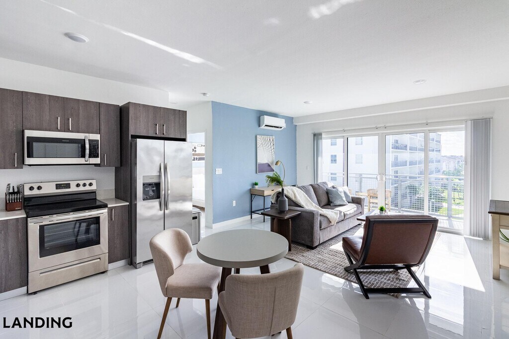 Landing is a top-rated, fully furnished apartment network with thousands of homes across 250+ U.S. cities. With premium amenities, a mobile app to manage your stay, and 24/7 support. Our apartments have everything you need for monthly and longer stays.: 6-Month Minimum base rent: starts at $3350/mo 12-Month Minimum base rent: starts at $2924/mo Landing's apartments at Modern Towers are designed for comfortable, easy living, with the ability to stay as long as you like. All Landing apartments include: - Fast Wi-Fi - Stylish furnishings - Fully-stocked bathroom - Smart TVs - Comfortable bed - Professionally cleaned - Guest support Stay longer for cheaper! The longer you stay, the bigger your discount. Price advertised is for a 12-month stay, including all utilities and fees, and may vary based on availability. We manage multiple units at this property. While all feature a similar style and furnishings, the layout and specific design elements may vary slightly from the photos provided. Some of the nitty-gritty: a background check and proof of income are required; we're completely smoke-free; pet-friendly options are available; parking is subject to availability.