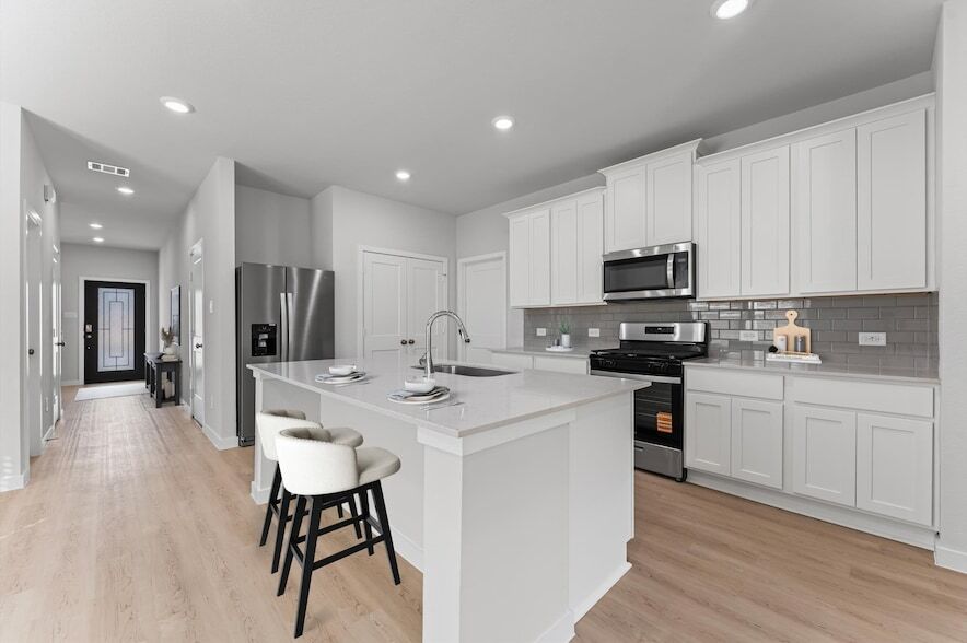 Discover stylish living in this freshly built two-storyhome tucked in a serene setting with no rear neighbors.Enjoy the privacy and relaxing views of the green reserve right from your backyard. The open-concept floorplan is ideal for today's lifestyle, connecting a spacious family room with a modern island kitchen featuring sleek quartz countertops, gas rage, pantry and stainless-steel appliances. The primary suite is toughtfully placeed on the first floor for convenience and offers a generous walk in closets an beautifully finished en-suite bath with a walk-in shower. Upstairs includes three secondary bedrooms with a great natural light and well appointed full bathroom, with tub/shower combo. Located minutes from The Woodlands, shopping, dinning, major commute routes. HOME IS READY FOR YOU TO MOVE IN AND ENJOY FROM DAY ONE.