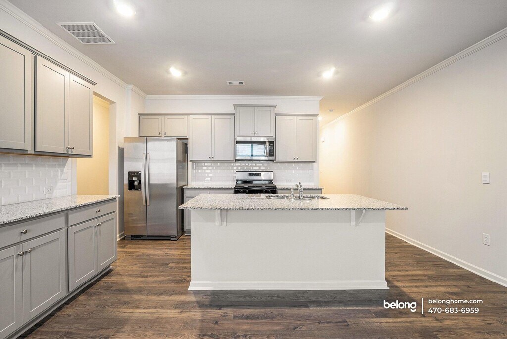 This inviting 3-bedroom, 2.5-bath home offers a bright, open layout paired with modern finishes that make everyday living feel comfortable. Wide plank flooring, soft neutral tones, and recessed lighting adorn the main living area, where there’s plenty of room to relax, host, or settle into your daily routines. The kitchen anchors the space with a spacious island, generous counter surfaces, and ample cabinetry, opening naturally to the dining and living areas for easy connection throughout the main level. Large windows and glass doors bring in natural light and provide a clear view outside, adding to the airy feel of the space. A dedicated laundry room comes equipped with a washer and dryer, while central heat, A/C, and a water heater support comfort throughout the year. An attached garage adds everyday convenience and extra storage, and pets are welcome so your four-legged companions can feel right at home, too. Nearby, you’ll find grocery stores, local cafes, and everyday shopping, along with The Mall of Georgia offering a wide mix of retail, dining, and entertainment. Outdoor options like Ivy Creek Greenway and surrounding parks provide space to walk, bike, or unwind, rounding out a well-connected place to settle in. *Pet weight limit is 15 lbs - if your pet exceeds this, please reach out to see if we can accommodate! *Our homes come as-is with all essentials in working order. Want upgrades? Request it through the Belong app, and our trusted pros will take care of the rest.