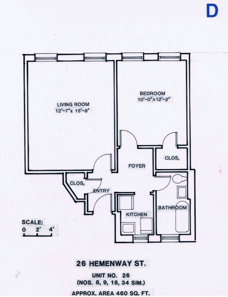 There is currently a 1 Bed 1 Bath Condo for rent with 460 listed at 26 Hemenway St. It is Available September 1, 2026.