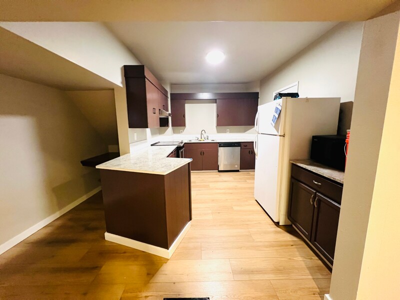 Property Id: 2330866 Newly updated home, move in ready! This home has 4 bedrooms,1.5 bathrooms. Includes washer and dryer, ready for use. Has a large dining room area and a spacious living room area! Kitchen is partially open concept. Great size partially fenced lawn area. Has a middle school and park within walking distance. Grocery stores and coffee shops within 1 mile distance! Plenty of parking spaces.