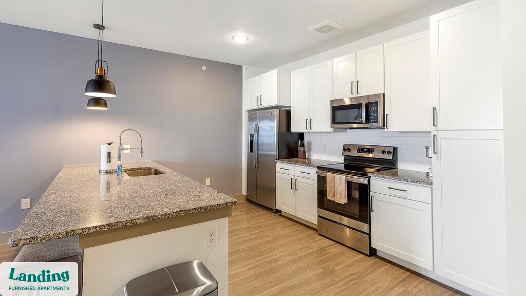 Landing offers flexible lease terms from weeks to months. Please always visit our website or contact us for the latest pricing & availability. Stay longer, save more: 6-Month Minimum base rent: starts at $1649/mo 12-Month Minimum base rent: starts at $1699/mo Landing offers flexible leases across a network of over 35,000 fully-furnished apartments throughout 375+ cities so you can rent on your terms, practically anywhere, and avoid the hassle of paying deposits or application fees. Visit to learn about all the benefits of a Landing membership, see our competitive up-to-date pricing, explore available apartments, take virtual tours, and make reservations online without jumping through traditional rental hoops. Landing's apartments at Atlas Bluewood are designed for comfortable, easy living, with the ability to stay as long as you like. Experience living with Landing Every apartment is outfitted with all the modern essentials including: custom-designed furnishings, a fully-equipped kitchen with deluxe stainless steel appliances, a gourmet coffee maker, premium linens, Smart TVs, and incredibly fast, reliable internet for working from home. When you live with Landing, you'll enjoy a hassle-free experience with the added benefit of 24/7 access to our dedicated member experience team. Some of the nitty-gritty: a background check and proof of income are required; we're completely smoke-free; bundled utility packages and pricing vary based on length of stay; pet-friendly options available; listed price reflects a 12-month minimum stay.