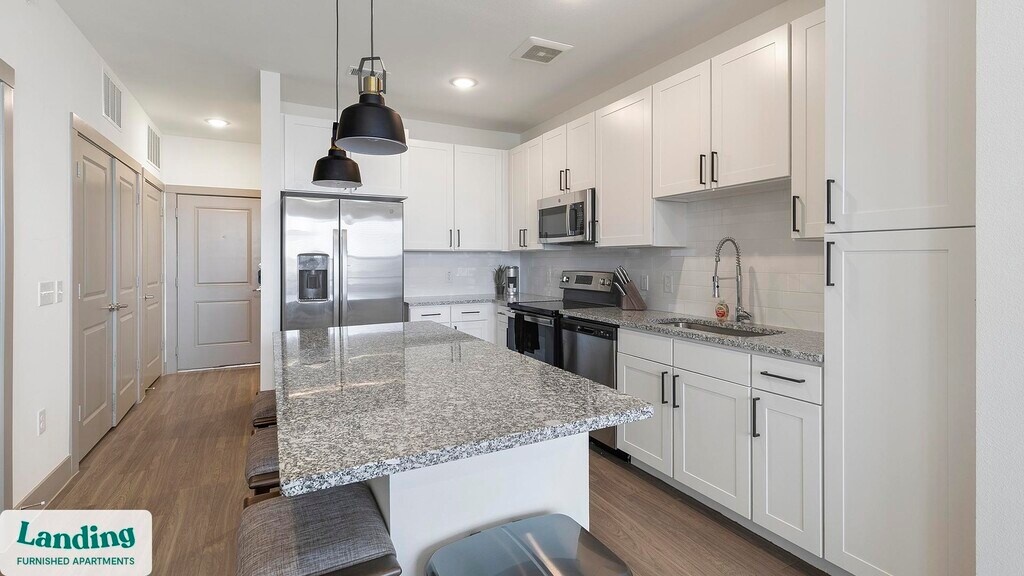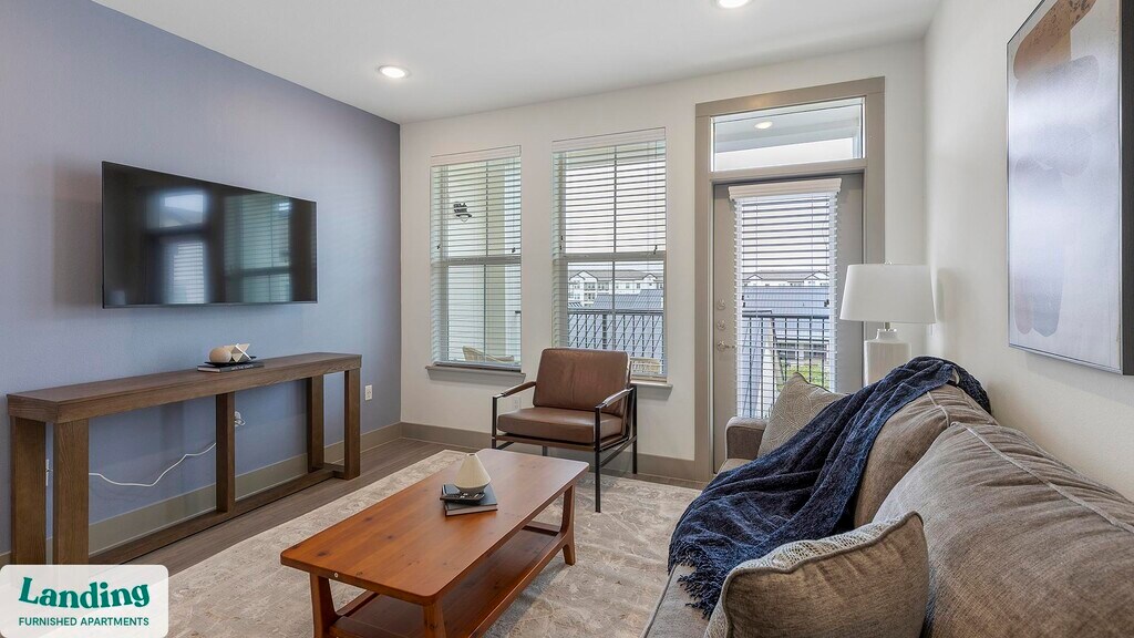 Landing offers flexible lease terms from weeks to months. Please always visit our website or contact us for the latest pricing & availability. Stay longer, save more: 6-Month Minimum base rent: starts at $2149/mo 12-Month Minimum base rent: starts at $1920/mo Landing offers flexible leases across a network of over 35,000 fully-furnished apartments throughout 375+ cities so you can rent on your terms, practically anywhere, and avoid the hassle of paying deposits or application fees. Visit to learn about all the benefits of a Landing membership, see our competitive up-to-date pricing, explore available apartments, take virtual tours, and make reservations online without jumping through traditional rental hoops. Landing's apartments at Atlas Bluewood are designed for comfortable, easy living, with the ability to stay as long as you like. Experience living with Landing Every apartment is outfitted with all the modern essentials including: custom-designed furnishings, a fully-equipped kitchen with deluxe stainless steel appliances, a gourmet coffee maker, premium linens, Smart TVs, and incredibly fast, reliable internet for working from home. When you live with Landing, you'll enjoy a hassle-free experience with the added benefit of 24/7 access to our dedicated member experience team. Some of the nitty-gritty: a background check and proof of income are required; we're completely smoke-free; bundled utility packages and pricing vary based on length of stay; pet-friendly options available; listed price reflects a 12-month minimum stay.