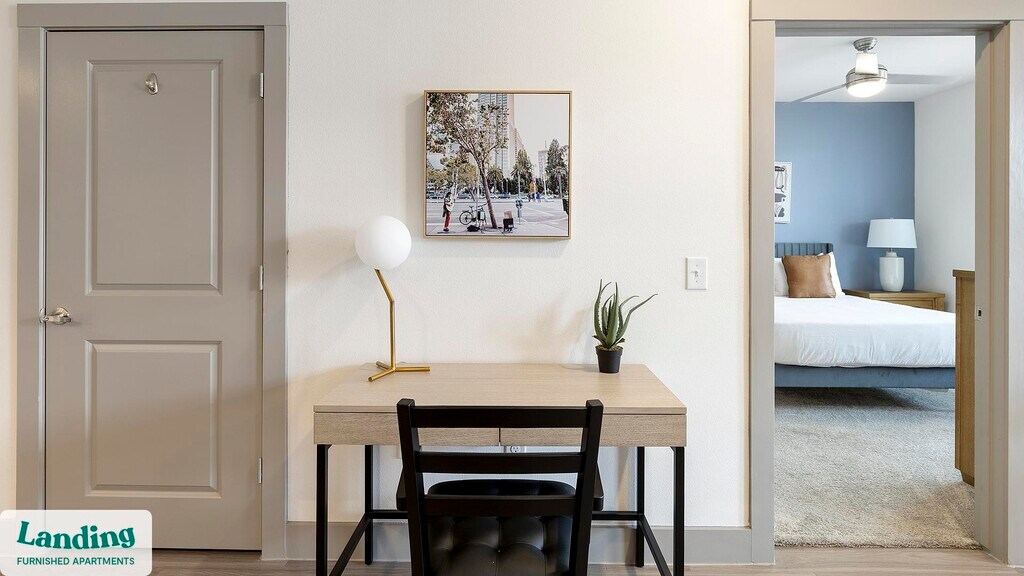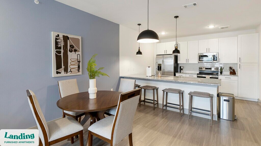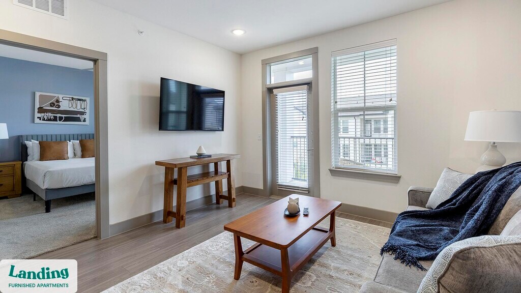 Landing offers flexible lease terms from weeks to months. Please always visit our website or contact us for the latest pricing & availability. Stay longer, save more: 6-Month Minimum base rent: starts at $2018/mo 12-Month Minimum base rent: starts at $2018/mo Landing offers flexible leases across a network of over 35,000 fully-furnished apartments throughout 375+ cities so you can rent on your terms, practically anywhere, and avoid the hassle of paying deposits or application fees. Visit to learn about all the benefits of a Landing membership, see our competitive up-to-date pricing, explore available apartments, take virtual tours, and make reservations online without jumping through traditional rental hoops. Landing's apartments at Atlas Bluewood are designed for comfortable, easy living, with the ability to stay as long as you like. Experience living with Landing Every apartment is outfitted with all the modern essentials including: custom-designed furnishings, a fully-equipped kitchen with deluxe stainless steel appliances, a gourmet coffee maker, premium linens, Smart TVs, and incredibly fast, reliable internet for working from home. When you live with Landing, you'll enjoy a hassle-free experience with the added benefit of 24/7 access to our dedicated member experience team. Some of the nitty-gritty: a background check and proof of income are required; we're completely smoke-free; bundled utility packages and pricing vary based on length of stay; pet-friendly options available; listed price reflects a 12-month minimum stay.