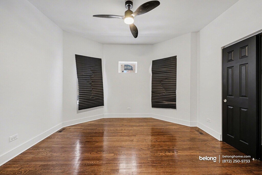 This beautifully updated, move-in-ready apartment delivers a polished blend of comfort and modern style in Chicago’s South Shore neighborhood. Thoughtful upgrades throughout create a home that feels fresh, functional, and ready to enjoy from day one. Its layout offers three spacious bedrooms, a full bathroom, a separate dining room, and a bright, inviting living room that works just as well for entertaining as it does for a home office setup. Plenty of windows bring in great natural sunlight, while hardwood floors run through every room for a clean, cohesive look. Black accent walls and décor add a bold, contemporary touch without overwhelming the space. The kitchen is equipped with granite countertops and stylish, modern appliances. Recent upgrades include all-new windows, plumbing, and electrical and a rebuilt back porch, along with the added comfort of central air conditioning. Off-street parking is available, making daily routines that much easier. Conveniently located, the apartment sits within walking distance of the Metra, approximately 0.4 miles away, with easy access to the 79 bus connecting to the Red Line and downtown. Rainbow Beach and Lake Michigan are also close by, at under one mile, offering quick access to the shoreline and outdoor recreation. *Our homes come as-is with all essentials in working order. Want upgrades? Request it through the Belong app, and our trusted pros will take care of the rest!