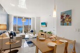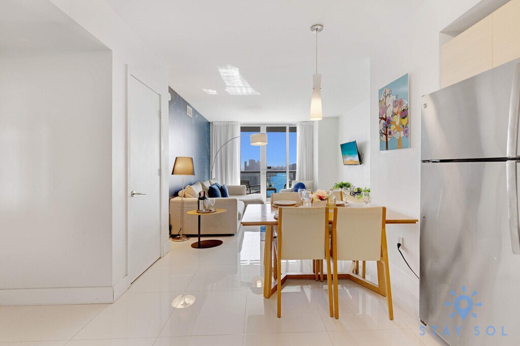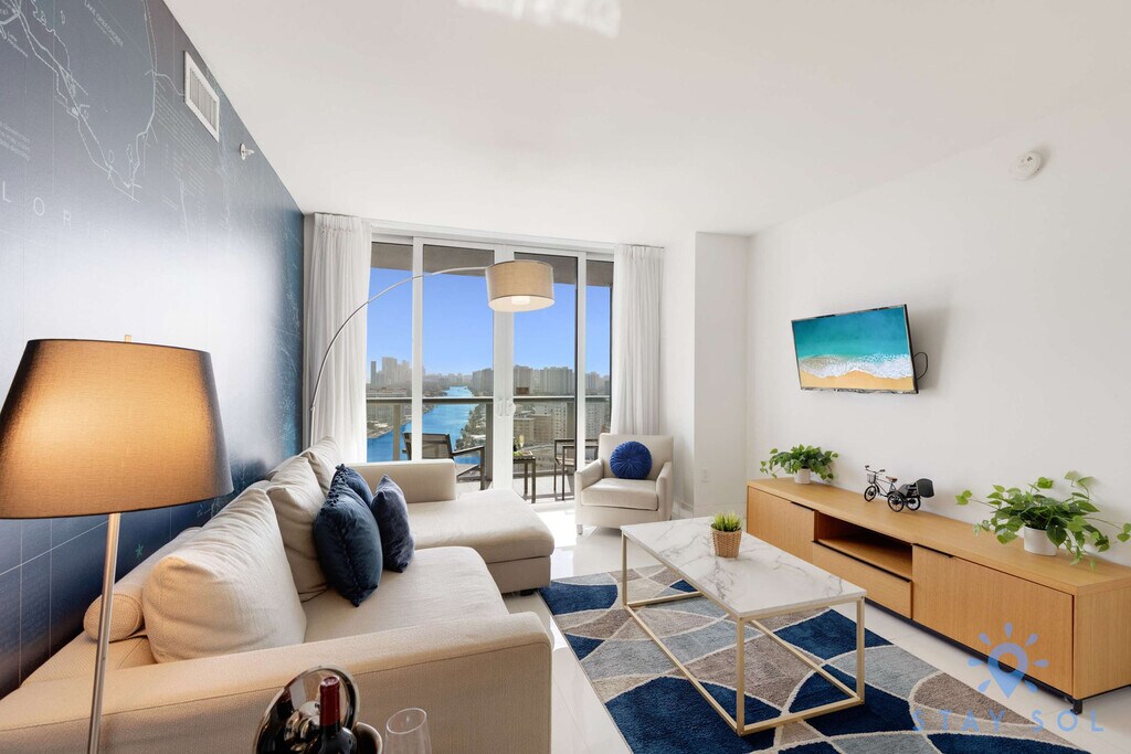Feel at home in this spectacular upper-level apartment at Beachwalk Resort, designed by Pininfarina (Ferrari), with private stunning views. This spacious apartment features 2 bedrooms and 2 full baths. This unit has a balcony facing south, where you can enjoy direct views of the Intracoastal Waterway and the ocean. The fully equipped kitchen offers a stainless steel refrigerator/freezer, a glass stove, an integrated oven, a silent dishwasher, an integrated microwave, a stove, dishes, a coffee maker, a hairdryer, an electronic safe within the suite, an iron/ironing board, an in-suite washer/dryer and TVs in each room. You will also find a fitness center and a restaurant. Beach access is available with a free shuttle service to the beach (3 minutes away). Wireless internet is included. Valet parking is available. Package handling is available for $5 per package plus applicable taxes, and packages may be collected from the package room between 9 AM and 5 PM. A Pack 'N Play Crib is available upon request. This apartment is located at the Beachwalk Resort, at the corner of Hallandale Beach Boulevard and the Intracoastal Waterway, equidistant from Miami Beach to the south and Ft. Lauderdale to the north. Just beyond the resort, you'll find the Hollywood Beach boardwalk and miles of Blue Wave-designated beaches. The resort is surrounded by lots of restaurants, and the world-famous Gulfstream Park, where you can dine, enjoy horse races, or try your luck at the casino five minutes away. To the west, you can visit the famous colossal Hard Rock Guitar Hotel & Casino. It is the perfect location to be if you are attending an event at Hard Rock Stadium. To the south, you can continue to the renowned Aventura Mall, or if you feel like going on an adventurous nightlife, you can head to South Beach to party all night. To the north, you can enjoy more shopping and restaurants in the city of Fort Lauderdale. This apartment is minutes from Fort Lauderdale Airport. For groceries, you will find a 24-hour Walmart right next door and a Publix Supermarket two minutes drive. Beachwalk Resort imposes additional mandatory fees that are not included in the nightly rate. These fees are collected separately at check-in and are required to complete your reservation with the property. Resort fees are $30 per day, plus taxes for stays of 1 to 7 nights, $25 per day, plus taxes for stays of 8 to 14 nights, $20 per day, plus taxes for stays of 15 to 29 nights, and $300 per month + $10 for each additional day, plus taxes for stays of 30 nights or more. A $500 fine will be applied for any smoking violation. Please keep all doors closed and the air conditioning on at all times to help prevent condensation and property damage. Quiet hours are from 10:00 PM to 07:00 AM. Excessive noise or property damage may result in penalties. [SI]