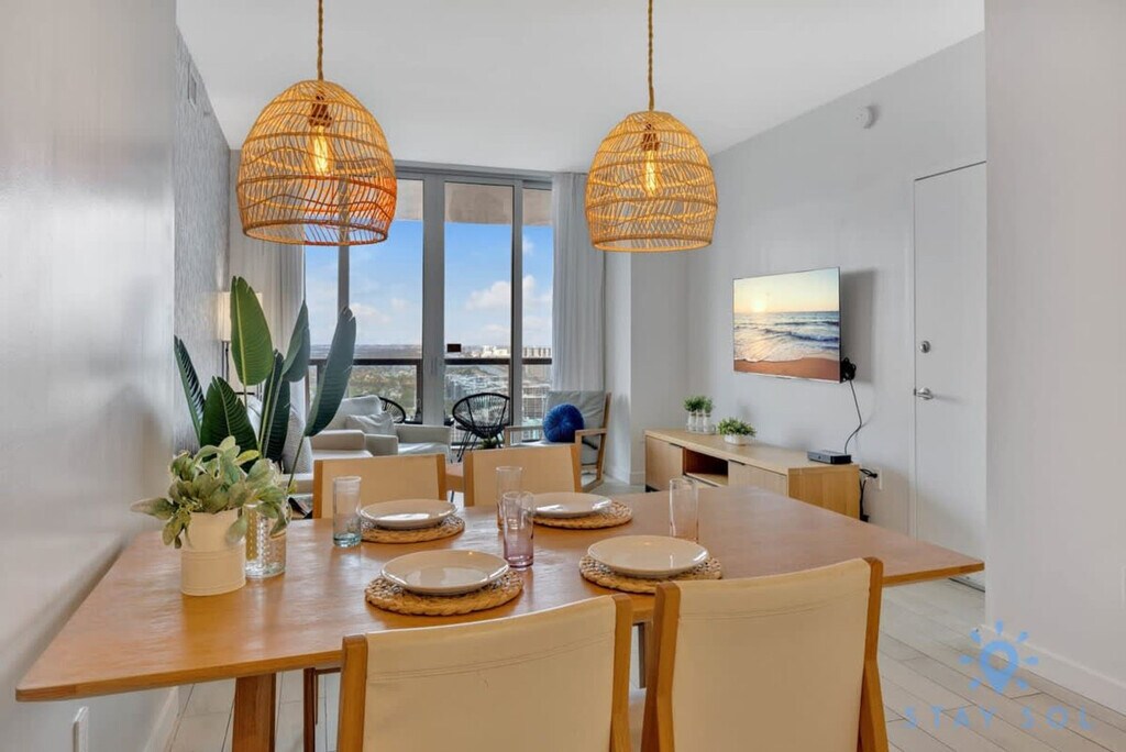 The advertised rate of $2,511/month is the lowest available price, based on a 30 day(s) stay with a move-in date of August 5, 2026. Rates vary depending on the duration of stay, season, and other parameters. For exact pricing and additional pricing components, please visit our website and enter your desired move-in and move-out dates. The rate is applicable when billed upfront; it can be higher if billed in multiple payments. Feel at home in this spectacular upper-level apartment located in the Beachwalk Resort, a brand new condo in front of Hallandale Beach, just a few minutes' drive to Aventura Mall and Sunny Isles Beach. This 1-bedroom apartment offers stunning views of the Atlantic Ocean, Intracoastal Waterway, and downtown skyline. This apartment features a full kitchen, 1 full bathroom, a private balcony, and an in-suite washer and dryer. The fully equipped kitchen offers a stainless steel refrigerator/freezer, a glass stove, an integrated oven and microwave, a silent dishwasher, dishes, a coffee maker, a hairdryer, an electronic safe, and an iron with ironing board. Amenities include a bay view pool, sundeck, and a modern fitness center. Beach access is available with a free shuttle service to the beach. Valet parking is available for a fee: 1 to 7 days is $28 per day per vehicle, plus taxes; 8 to 10 days is $25 per day per vehicle, plus taxes; 11 to 19 days is $250 per stay per vehicle, plus taxes; and 20 to 30 days is $295 per stay per vehicle, plus taxes. A Pack 'N Play Crib is available upon request. Package handling is available for $5 per package plus applicable taxes, and packages may be collected from the package room between 9 AM and 5 PM. Located at the corner of Hallandale Beach Boulevard and the Intracoastal Waterway, this apartment is equidistant from Miami Beach to the south and Fort Lauderdale to the north. Just beyond the resort, you'll find the Hollywood Beach boardwalk and miles of Blue Wave-designated beaches. Surrounded by many restaurants and the world-famous Gulfstream Park, you can dine out, enjoy horse races, or try your luck at the casino five minutes away. To the west, you can visit the famous colossal Hard Rock Guitar Hotel & Casino, and it's the perfect location to be on the beach if you are attending an event at Hard Rock Stadium. To the south, you can continue to the renowned Aventura Mall, or head to South Beach for nightlife. To the north, you can enjoy more shopping and restaurants in the city of Fort Lauderdale. The apartment is also minutes from Fort Lauderdale Airport. The Beachwalk Resort imposes additional mandatory fees that are not included in the nightly rate. These fees are collected separately at check-in and are required to complete your reservation with the property. The resort fee is $30 per day, plus taxes, for stays of 1 to 7 nights; $25 per day, plus taxes, for stays of 8 to 14 nights; $20 per day, plus taxes, for stays of 15 to 29 nights; and $300 per month plus $10 for each additional day, plus taxes, for stays of 30 nights or more. A $500 fine will be applied for any smoking violation. Please keep all doors closed and the air conditioning on at all times to help prevent condensation and property damage. Quiet hours are from 10:00 PM to 07:00 AM. Excessive noise or property damage may result in penalties. [SI]