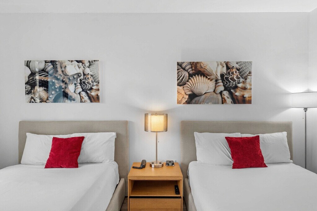 The advertised rate of $2,183/month is the lowest available price, based on a 1 month(s) stay with a move-in date of September 26, 2026. Rates vary depending on the duration of stay, season, and other parameters. For exact pricing and additional pricing components, please visit our website and enter your desired move-in and move-out dates. The rate is applicable when billed upfront; it can be higher if billed in multiple payments. Feel at home in this spectacular apartment at Beachwalk Resort, designed by Pininfarina (Ferrari). This spacious studio features a private balcony with stunning views, one full bath, and a convenient kitchenette with a mini fridge, microwave, coffee maker, electric kettle, and toaster, ideal for preparing light meals and snacks. Wireless internet is included. The room has two full-sized beds and a TV. Enjoy resort-style amenities, including a pool, gym, and beach access with a free shuttle service to the beach. A Pack 'N Play Crib is available upon request. Package handling is available for $5 per package plus applicable taxes, and packages may be collected from the package room between 9 AM and 5 PM. Valet parking is available for 1 to 7 days at $28 per day per vehicle, plus taxes; 8 to 10 days at $25 per day per vehicle, plus taxes; 11 to 19 days at $250 per stay per vehicle, plus taxes; and 20 to 30 days at $295 per stay per vehicle, plus taxes. Located at the corner of Hallandale Beach Boulevard and the Intracoastal Waterway, this apartment is equidistant from Miami Beach to the south and Ft. Lauderdale to the north. It is just one easy block to the beach and minutes from nightlife, dining, shopping, and recreation. The Hollywood Beach boardwalk and miles of Blue Wave-designated beaches are just beyond the resort. The resort is surrounded by restaurants and the world-famous Gulfstream Park. To the west, you can visit the Hard Rock Guitar Hotel & Casino, and to the south, the Aventura Mall. Fort Lauderdale Airport is minutes away. For groceries, you will find a 24-hour Walmart right next door and a Publix Supermarket two minutes away. Beachwalk Resort imposes additional mandatory fees that are not included in the nightly rate. These fees are collected separately at check-in and are required to complete your reservation with the property. Resort fees are charged daily: stays of 1 to 7 nights are $30 per day, plus taxes; stays of 8 to 14 nights are $25 per day, plus taxes; stays of 15 to 29 nights are $20 per day, plus taxes; and stays of 30 nights or more are $300 per month + $10 for each additional day, plus taxes. A $500 fine will be applied for any violation of the no smoking policy. Please keep all doors closed and the air conditioning on at all times to help prevent condensation and property damage. Quiet hours are from 10:00 PM to 07:00 AM. Excessive noise or property damage may result in penalties. [SI]