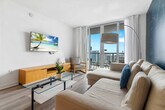 Experience the spectacular Beachwalk Resort apartment, designed by Pininfarina, featuring two bedrooms. The master bedroom includes a king-size bed and a full bathroom, while the second room offers two double beds and a full bathroom. Relax in the living room with a comfortable sofa. Located at the corner of Hallandale Beach Boulevard and the Intracoastal Waterway, this condo-hotel offers resort-style amenities, including a pool, fitness center, and restaurant. Enjoy home comforts with wireless internet and beach access via a free shuttle service, just one block from the beach. A Pack 'N Play crib is available upon request. Valet parking is optional with varying rates depending on the length of stay. Resort fees are charged separately at check-in, with daily rates based on the duration of your stay. Explore the vibrant surroundings with the Hollywood Beach boardwalk and Blue Wave-designated beaches nearby. Discover dining and entertainment at Gulfstream Park, the Hard Rock Guitar Hotel and Casino, and Aventura Mall. The property is conveniently located minutes from Fort Lauderdale Airport, with easy access to Miami Beach and Fort Lauderdale. The gym is currently closed due to ongoing improvements. Smoking is prohibited both inside and outside the premises, with violations resulting in eviction and up to $500 in cleaning charges. Resort fees are mandatory and collected at check-in to complete your reservation.