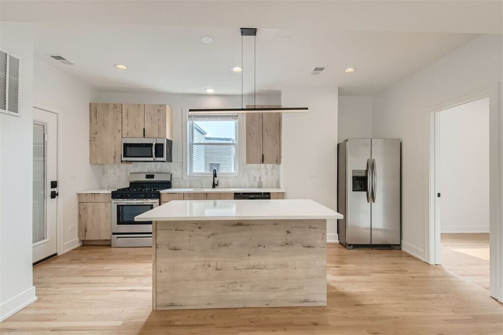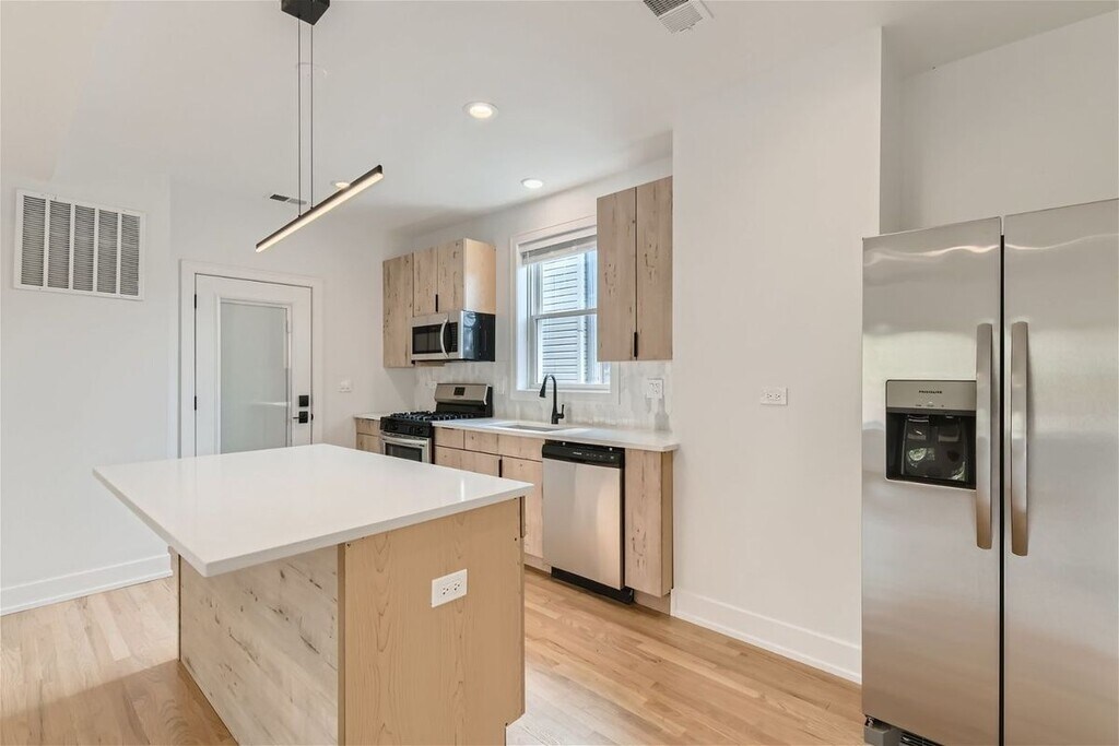This recently renovated with today's trends, this GORGEOUS 2 bed 2 bath in Logan Square features top-of-the-line finishes, open living space, large windows, spacious closets and more! It also has a washer-dryer in unit, forced heat and central air. Pets welcome! Enjoy the luxury of being around the corner from neighborhood coffee shops, bakeries and grocery stores. Plus, you'll be within a short distance to Logan Square Plaza, Kosciuszko Park and The 606 West Trailhead. Easy street parking! MUST SEE! The first showings for this apartment will be Wednesday, 4-22-26 at 6:30 p.m.