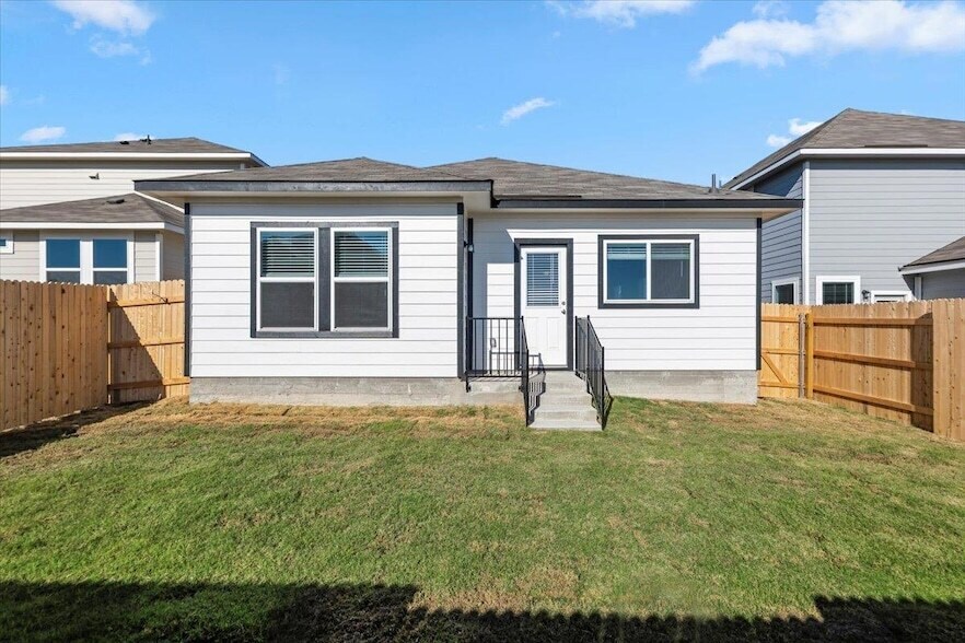 3-bedroom, 2-bath home built in 2025, located in the vibrant Pflugerville community. This single-story residence boasts an open floorplan with a spacious eat-in kitchen, pantry, and recessed lighting, creating a perfect space for entertaining and everyday living. The primary bedroom is conveniently located on the main level for privacy and ease. Step outside to enjoy the covered patio and beautifully landscaped corner lot with automatic sprinklers in the front, back, and side yards. Additional highlights include an attached single-door garage, driveway parking, and modern utility hookups for washer and dryer. Residents enjoy excellent community amenities, including sidewalks, walking/biking trails, a dog park, playground, high-speed internet, streetlights, and underground utilities. Thoughtfully designed for comfort, convenience, and active living, this home is ready to welcome you.