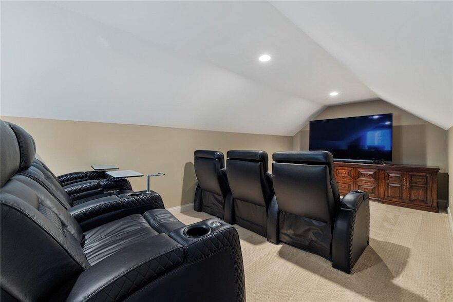 MOVE RIGHT IN! Experience Elegant, Low-Maintenance, Luxury living at its finest in the highly sought after Edgewater Community in Oakmont. Walking Distance to EVERYTHING that Oakmont offers: Local shops, restaurants, famous WALKING trail along the river & MORE! Short Drive to Oakmont Country Club, Rte. 28 & PA Turnpike. As you enter the home you are greeted with gorgeous hardwood flooring & spacious entryway. Open-Concept Kitchen with sleek quartz countertops & SS appliances. Large dining room, perfect for entertaining! Outdoor patio with retractable awning! MAIN FLOOR PRIMARY SUITE, w/ walk-in closet & ensuite bath w/ double vanity sink & walk-in shower. 1st fl laundry/mudroom. The 2nd level of the home fts. 3 generously sized bedrooms, a full bath & BONUS Additional 24x11 THEATER ROOM. ENORMOUS 3-CAR attached garage! w/ plenty of storage-drop down stairs to attic. New TANKLESS Hot Water w/ recirculation installed. Fenced-in side yard with meticulously landscaped gardens!