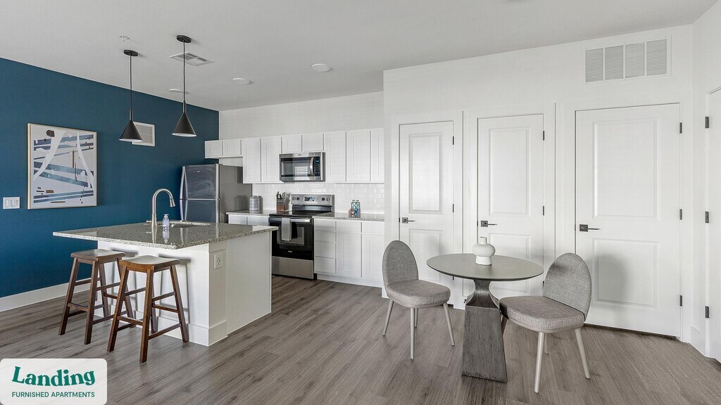 Landing offers flexible lease terms from weeks to months. Please always visit our website or contact us for the latest pricing & availability. Stay longer, save more: 6-Month Minimum base rent: starts at $2464/mo 12-Month Minimum base rent: starts at $2157/mo Landing offers flexible leases across a network of over 35,000 fully-furnished apartments throughout 375+ cities so you can rent on your terms, practically anywhere, and avoid the hassle of paying deposits or application fees. Visit to learn about all the benefits of a Landing membership, see our competitive up-to-date pricing, explore available apartments, take virtual tours, and make reservations online without jumping through traditional rental hoops. Landing's apartments at The Park at Heritage Hills are designed for comfortable, easy living, with the ability to stay as long as you like. Experience living with Landing Every apartment is outfitted with all the modern essentials including: custom-designed furnishings, a fully-equipped kitchen with deluxe stainless steel appliances, a gourmet coffee maker, premium linens, Smart TVs, and incredibly fast, reliable internet for working from home. When you live with Landing, you'll enjoy a hassle-free experience with the added benefit of 24/7 access to our dedicated member experience team. Some of the nitty-gritty: a background check and proof of income are required; we're completely smoke-free; bundled utility packages and pricing vary based on length of stay; pet-friendly options available; listed price reflects a 12-month minimum stay.