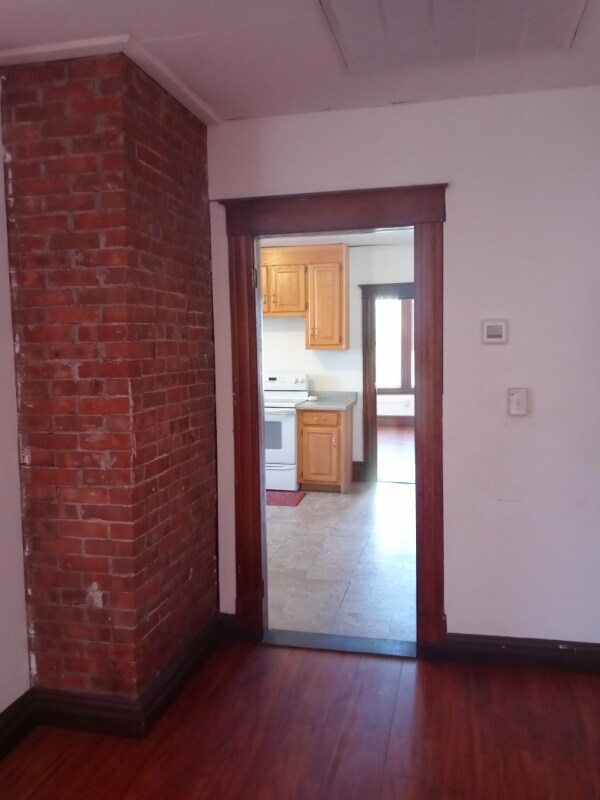 Property Id: 78609 Newly renovated 4 bedroom apartment on 3rd floor of beautiful Victorian multifamily. African Mahogany wood floors, new windows and accent chandelier in entry. Eat in kitchen includes range and fridge. Exposed brick in living room with newly installed 98% efficiency gas heating system. Fenced in yard, camera and fire safety systems, and keypad entry for security.