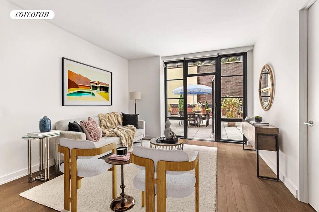 Find your sanctuary in the city with your own private fully landscaped 826 SF terrace at The Seymour! This spacious home has an wonderful split bedroom layout with a large dining area, perfect for hosting dinner parties inside and out. This is a fantastic price for a pin-drop quiet enclave on a tree-lined street in prime Chelsea.Residence features:-826 SF private terrace with landscaped water irrigation system-Pin-drop quiet residence at the corner of the building, with only one wall the (2nd bath) adjoining another apartment- All rooms facing to private landscaped garden-Split bedroom layout each with its own ensuite bathroom-Spacious Island Kitchen with Top-of-the-line Bertazzoni, Miele and Subzero appliances-Solid oak floors and striking floor to ceiling casement windows-Spa-like bathroom with Bianco Dolmitti marble, Grohe fittings and a deep soaking tub-Incredible closet space and in-unit washer/dryerThe Seymour's hotel-like amenities include a brick and ivy garden, a bright airy gym, a lounge with a fireplace and pool table, a media room, library, and a roof deck which has fabulous views, a lounge area and an outdoor kitchen. This luxurious boutique doorman condo is on a tree lined street with the C-train on the corner of 25th and 1 at 23rd. Set in the heart of Chelsea situated by the Highline, Madison Square Park, Chelsea Piers, Hudson Yards, Trader Joe's, and Whole Foods.Pets case by case. There is an upfront $20 application fee to apply.Additional condo board fees, if approved:First month rent and one month security deposit at lease signing.$450 Building Review/Processing Fees (non-refundable)$165 Credit Check fee per applicant (non-refundable)$500 Move-In Fee (non-refundable)$1000 Move-In Security Deposit (refundable)$1000 Move-Out Security Deposit (refundable)$185 Domecile Application Initiation/Submission Fees (non-refundable)