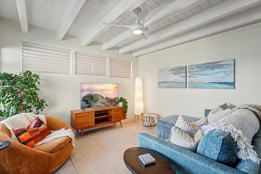 Feel at home in this classic San Diego beach getaway! This cozy 1-bedroom, 1-bath condo is the perfect spot for a relaxed stay just steps from the bay. This 450-square-foot unit features a comfortable queen bed in the bedroom, plus a sleeper sofa in the living room for additional guests. The compact kitchen includes all the basics for light cooking. Other amenities include a private entrance and self check-in with keypad. A dedicated garage parking spot is available. Located steps from the water, this apartment is in a prime San Diego location. It's just 100 feet from the sand and beach access, and a short walk to Mission Bay and Bayside Walk. The Mission Beach Boardwalk and Belmont Park are also within walking distance. A short 5-10 minute drive will take you to SeaWorld San Diego, Mission Bay Golf Course & Practice Center, and Pacific Beach Pier. This apartment does not have air conditioning. The total number of guests must not exceed what is listed on your reservation, including children and infants. You may have up to 3 additional daytime guests, but they must leave by 10:00 PM. Any overnight guests not listed on the reservation or anyone staying past 10:00 PM will incur a $100 per person, per night fee and may result in cancellation of your stay. The backyard is open between 8:00 AM – 10:00 PM, and quiet hours are from 10:00 PM – 8:00 AM. Smoking of any kind, including vaping and cannabis, is strictly prohibited anywhere inside or outside the home, and violations will result in a minimum $600 odor removal fee. Parties, events, or large gatherings are not permitted. The use of loud music or outdoor speakers is prohibited; only small portable speakers at low volume may be used outside. Check-in is at 4:00 PM and check-out is by 10:00 AM. A $150 cleaning fee may apply if the home is left excessively dirty. No pets are allowed, and unapproved pets will result in fines and additional cleaning fees. Registration Number: STR-04292L [SI]