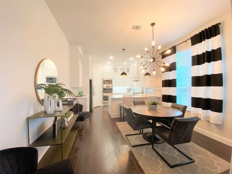 Wonderful 3 bedroom with 2.5 baths! Upgraded elevation with stone exterior and 8 doors at first floor. Bright living room and cozy corner fireplace. Beautiful hardwood flooring! Charming kitchen with stainless steel appliances, double ovens, quartz countertops, corner pantry, and raised panel cabinets with glass doors. Luxurious shower and tub in owner's bath. Second floor offers a spacious loft with a balcony, two bedrooms, and a bathroom. Storage closet on balcony. Mud room with desk and built-in cabinets. Tankless water heater. Master bedroom downstairs. Security system. Quiet community and easy access to 75 Hwy, surrounded by HiTech companies. HOA covers front yard maintenance. Plano ISD.