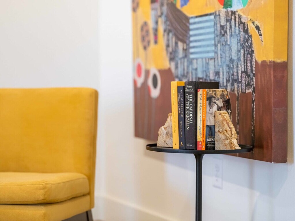 Discover a unique art-inspired oasis in Bentonville, where creativity meets comfort. This stylish apartment offers a plush queen bed and a fold-down twin sofa, perfect for an extra guest or child. Enjoy the convenience of free on-site parking and seamless self-check-in with a smart lock, allowing you to feel at home from the moment you arrive. Step into a creative living area adorned with curated local art and bold design. Relax in the bright lounge with comfortable seating, a 70” Smart TV, and access to streaming channels, books, and games. The modern bath features a tub and shower, fluffy towels, and toiletries, while the kitchenette is equipped with a mini-fridge, microwave, Keurig, and essentials, though it lacks a stove, oven, or washer/dryer. Dogs are welcome with prior approval and a pet fee, with a maximum of two dogs allowed. Enjoy the convenience of free designated parking and ample on-street options nearby. Nestled directly across from Osage Park, this apartment provides direct access to scenic trails ideal for biking or morning walks. Just minutes away, explore cultural landmarks like Crystal Bridges Museum of American Art and The Momentary. Savor Bentonville’s award-winning food scene with local favorites such as Onyx Coffee Lab, The Hive, and Tavola Trattoria. Downtown attractions, boutique shopping, and seasonal festivals are all within easy reach. Smoking is prohibited inside the apartment, with designated outdoor areas available for smoking. Quiet hours are enforced from 9:00 PM to 8:00 AM to ensure a peaceful environment. Parties and events are not allowed, and guests are expected to treat the home with care, reporting any damage promptly. Starter supplies such as toilet paper, paper towels, and soap are provided, but guests may need to purchase additional items for longer stays. Designed for work-from-anywhere travelers, this apartment features a dedicated desk, ergonomic chair, and high-speed Wi-Fi with speeds up to 379 Mbps, making it perfect for remote workers and students. A laptop computer is not included.