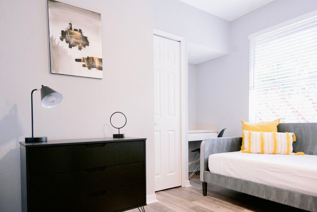 Property Id: 2469608 Spacious and well-maintained 4-bedroom, 2-bath home offering 3 private bedrooms for rent in a student-focused living environment. The home is fully furnished, and all utilities are included — electric, water, internet, trash, security system and outside cameras and pest control — for simple, predictable monthly expenses. Outside gazebo with BBQ and seating shared with all tenants. Note: Pictures are from recent ABB listing but will have slightly different furniture to better accommodate students. Three rooms available with different sizes and layouts: • $925/month - Largest bedroom, fits a queen-size bed, located directly across from the shared bathroom • $895/month - Mid-size bedroom, fits a full-size bed • $875/month - Smaller bedroom, best suited for a twin-size bed The three tenants will share one full bathroom. The home also includes a second bathroom (ensuite) used by the primary resident. Commute: • University of Central Florida (Main Campus): approx. 15-17 miles / 20-25 minutes by car • Valencia College (East & West): approx. 15-20 minutes by car • UCF Downtown Campus: approx. 15-20 minutes by car • Full Sail University: approx. 20-25 minutes by car • Barry University: approx. 5.9 miles / 15-20 minutes by car