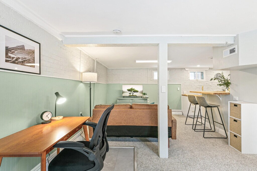 The advertised rate of $3,582/month is the lowest available price, based on a 30 day(s) stay with a move-in date of December 24, 2026. Rates vary depending on the duration of stay, season, and other parameters. For exact pricing and additional pricing components, please visit our website and enter your desired move-in and move-out dates. The rate is applicable when billed upfront; it can be higher if billed in multiple payments. Welcome to your charming 600 sqft junior 1-bedroom in the heart of Congress Park. Located in a basement unit, feel at home with refinished hardwood floors, a renovated kitchen and bath, and a cozy built-in breakfast nook perfect for morning coffee. Newly renovated with designer touches, this apartment features a stocked kitchen ready for your culinary adventures. Included amenities are all utilities and internet, fast internet with 300 Mbps download and 10 Mbps upload, a smart TV for your streaming needs, and free communal laundry. Pet rent is $90 per dog per month. Please add your dog to the reservation to ensure proper payment. Located on the best street in Congress Park, this apartment is park heaven, only 3 blocks to Congress Park, 5 blocks to City Park, and 6 blocks to Cheesman Park and Botanic Gardens. Dozens of cool coffee shops and restaurants are within 5 blocks walking, with Congress Park Market for groceries and sandwiches across the street and Sprouts Farmers Market 8 blocks away. It's also conveniently located 8 minutes to Cherry Creek Shopping District, 10 minutes to downtown Denver, RiNo, and LoHi, 30 minutes to Red Rocks, 1 hour and 30 minutes to ski resorts, and near several hospitals. Free street parking is available on North/South bound Elizabeth St and Clayton St that are half block in either direction. 1 or 2 hour parking on 12th Ave. Please see signs for street sweeping days. The host controls central heat from a single thermostat for the building. Guests control window AC units and tower fans. We are dog friendly, but have a strict no cats policy. Many of our guests work from home. Please be mindful of the noise coming from your unit due to pets, music, and children as to not cause a disturbance. A warning will be given for any reported noise disturbances. Additional disturbances will result in eviction from the property, and guests will not be given any refund for issues related to noise violations. All properties are non-smoking/non-vaping, and violation of the no smoking/vaping policy will result in damages fees. Check out time is 10 AM, and failure to check out on time will incur a $50 fee for every additional 30 minutes. [SI]