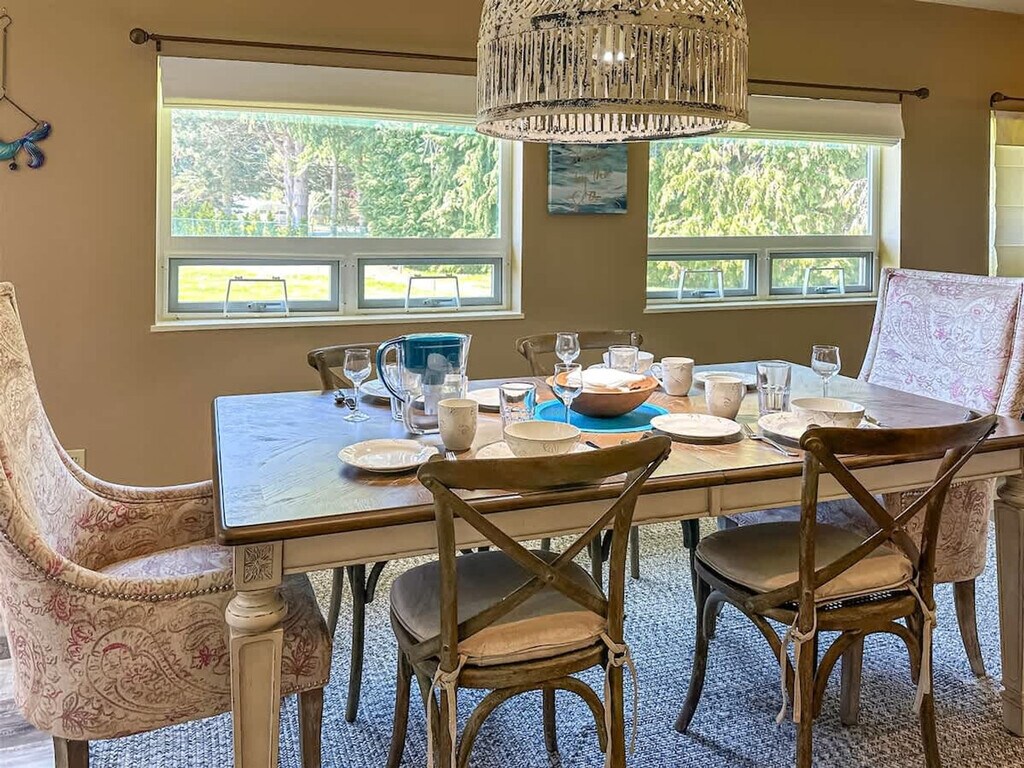 Feel at home in Seashells Nest, a 3-bedroom, 2.5-bath coastal-inspired retreat in one of Sequim's peaceful neighborhoods. Surrounded by expansive, level lawns, this charming vacation rental promises a rejuvenating stay. This retreat offers a large living-dining, open concept space with a couch, TV, children's nook, dining table, and fireplace. The fully equipped kitchen features modern appliances and all the essential cookware, with plenty of dishes, cups, and glasses, plus a dishwasher. Enjoy the convenience of a laundry room with a full-sized washer and dryer and unscented laundry products. This home has heat pumps (heat and cold) and electric heaters, with heat pumps located both upstairs in the main bedroom and downstairs near the kitchen and dining room areas. Take advantage of the deck with a patio table and chairs and a propane grill for a delightful barbecue experience. Pets are welcome with a fee of $25 per pet per night. Seashells Nest is located in between the Dungeness National Wildlife Reserve and downtown Sequim. Many hiking and beachcombing adventures are within 5 minutes to an hour's drive from the home. The first entrance to Olympic National Park at Hurricane Ridge offers panoramic mountain views and meandering trails. Out of respect for guests with allergies, this home is strictly pet free. Smoking of any tobacco products, including marijuana, e-cigarettes and vaping products, is not allowed in the house or on the property. Renters who do not comply with this policy may be asked to leave without a refund and may be assessed with a $300 smoke removal fee, charged to the renter’s credit card. Unauthorized pets will incur a $250 penalty fee and you are subject to immediate eviction. If pet droppings are found on the property there will be an extra charge of $35 per pile. Additional guests, beyond what was agreed on, is not permitted. Tampering with outside cameras is cause for immediate cancellation of the reservation with no refund. [SI]