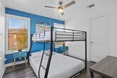 Feel at home in this spacious 4-bedroom property, offering two 2-bedroom units, each featuring a Queen bed and a Full-over-Queen bunk. Perfect for groups or families, this apartment accommodates up to 12 guests. Enjoy the convenience of full kitchens, Wi-Fi, and laundry facilities in both units. Located near the Medical Center, Downtown, and UH, this property offers easy access to Houston's top attractions. The apartment is situated in a peaceful gated community with an upstairs/downstairs layout, providing a comfortable and private living experience. Designed with modern decor and stylish furnishings, this apartment offers a cozy living space with smart TVs, books, and games. The fully equipped kitchens come with all necessary appliances and essentials, making it easy to prepare meals during your stay. Each unit features a 2-in-1 washer/dryer and ironing facilities for added convenience. This pet-friendly property welcomes pets with an additional fee. Unauthorized pets will incur a $500 extra fee. Parking is available with four shared spots on a first-come, first-served basis, and free street parking is also available. Guests have access to a community gym through a partnership with Emancipation Park, located a short drive away. Mid-stay cleanings are required for stays over 7 nights, and special rates are available for long-term stays. Nestled in Houston's historic Third Ward/MacGregor area, this apartment is part of a neighborhood known for its rich cultural roots and central location. The area is undergoing rapid revitalization, offering a mix of newly built homes and local short-term rentals. Enjoy easy access to Downtown, the Texas Medical Center, and the Museum District, all within a 10-15 minute drive. Nearby essentials like HEB grocery and pharmacies are just 5 minutes away, while public transportation options include local bus stops and METRORail stations within walking distance. The apartment is located in a renovated historic building, so some noise may carry between floors. Guests are encouraged to be mindful of footsteps and volume, particularly during quiet hours from 10pm to 7am. Unauthorized parties are prohibited and will incur associated fees. Smoking is only permitted outside the property. Check-out is at 10:00 AM. The property features secure smart lock access for hassle-free check-in, and guests are required to provide a government-issued ID and digital rental agreement prior to check-in. Security cameras are placed in exterior areas for guest safety. The apartment is equipped with high-speed 1Gbps Wi-Fi, making it ideal for remote work. The smart thermostat and space heaters provide a comfortable environment for working from home.