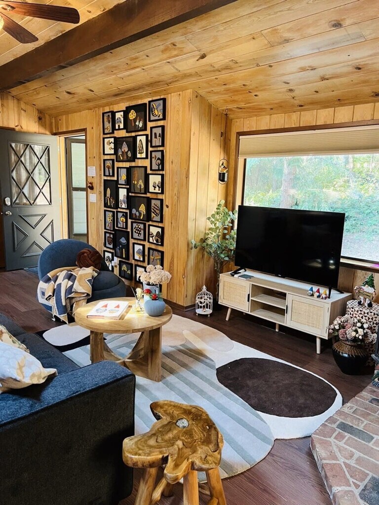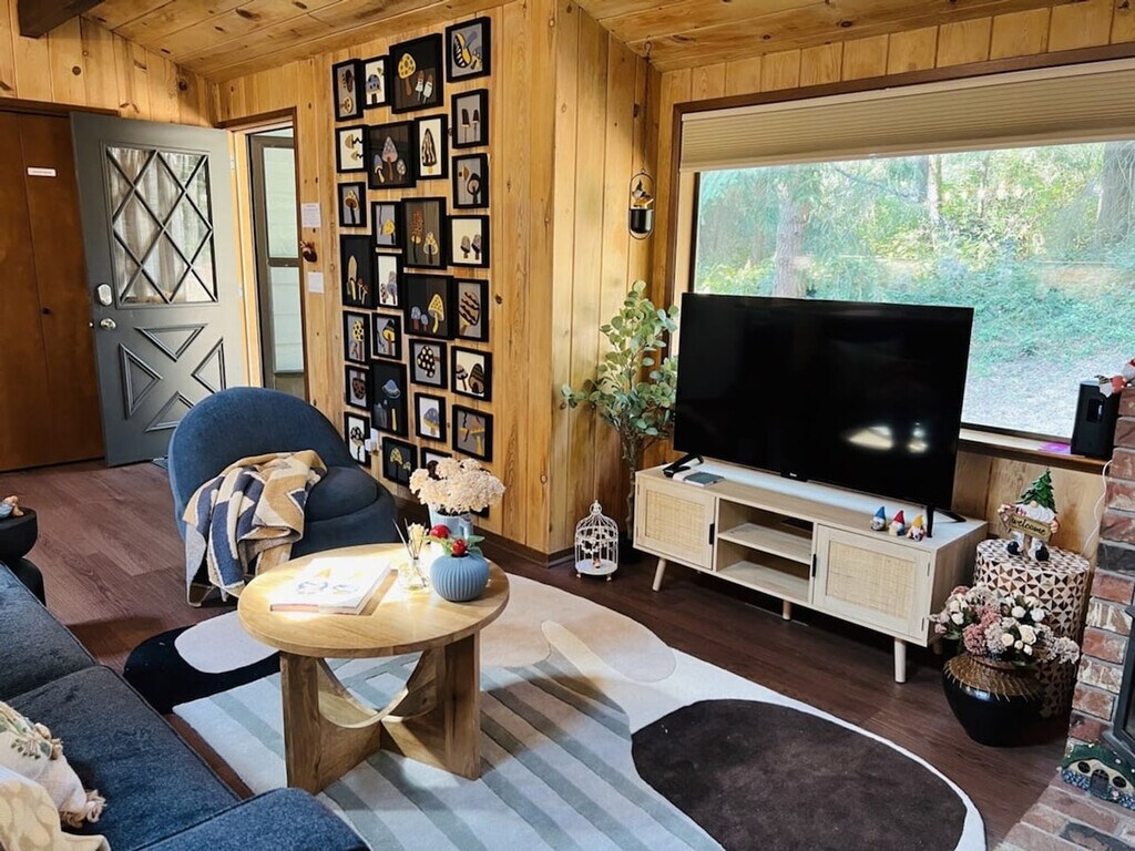 The advertised rate of $4,040/month is the lowest available price, based on a 1 month(s) stay with a move-in date of September 25, 2026. Rates vary depending on the duration of stay, season, and other parameters. For exact pricing and additional pricing components, please visit our website and enter your desired move-in and move-out dates. The rate is applicable when billed upfront; it can be higher if billed in multiple payments. Feel at home in this enchanted 2-bedroom forest cabin, where whimsical gnomes hide along a private trail. This fully remodeled 1,020 sq ft rambler blends modern comforts with fairy tale magic and is perfect for families seeking adventure. The home is all on one level with just a few steps to the entrance. This cabin offers a fully equipped kitchen with complete appliances and cookware, silverware, basic condiments, and a Keurig coffee maker with a tea selection. Other amenities include an on-site washer and dryer and Wi-Fi. Well-trained pets are welcome with a fee of $50 per night. Additional guests beyond the base rate of 4 are $25 per person per night, up to a maximum of 6. On-site parking is provided. Nestled in a peaceful wooded area, this forest retreat setting is perfect for families seeking tranquility and nature adventures. The secluded location provides privacy while still offering convenient access to local attractions. A car is recommended for exploring the area and accessing nearby dining and attractions. No smoking or vaping is allowed inside or out, and no parties are permitted. Quiet hours are from 10 pm to 8 am, and shoes are not allowed indoors; a $500 fine applies per violation. Please keep pets off all furniture, linens, beds, pillows, and towels, never leave pets unattended, and always clean up after them outdoors. Cell phone service can be spotty in this forest location, but Wi-Fi is available. [SI]