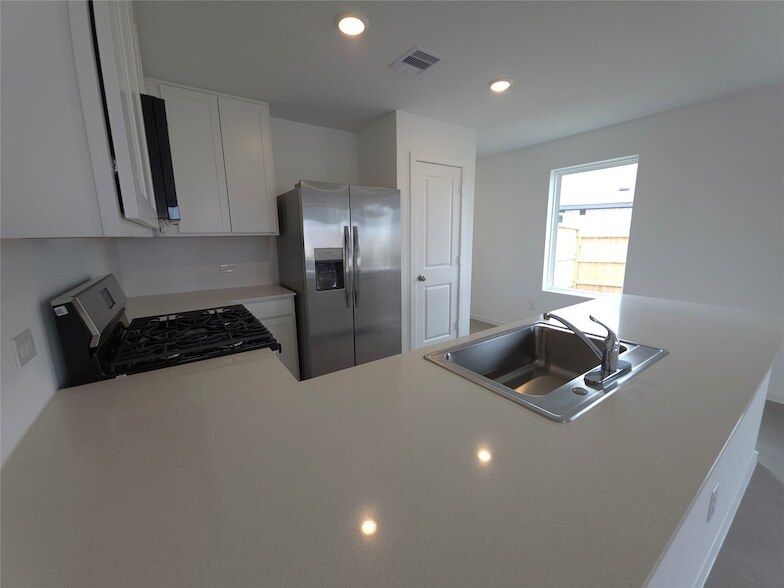 Welcome to this beautifully designed 3-bedroom home located in the new Anniston community. Featuring modern finishes and a thoughtful layout, this home is perfect for comfortable everyday living. Vinyl plank flooring in entry and throughout common areas. This home offers spacious living/dining room combo with plenty of lighting. Open kitchen comes with ample cabinet/counter space, breakfast bar and stainless-steel appliances including Refrigerator! Washer and Dryer included in home as well! Primary bedroom comes with spacious walk-in closet. Plenty of space in secondary rooms. Large backyard with no rear neighbors for added privacy and access to fantastic community amenities!