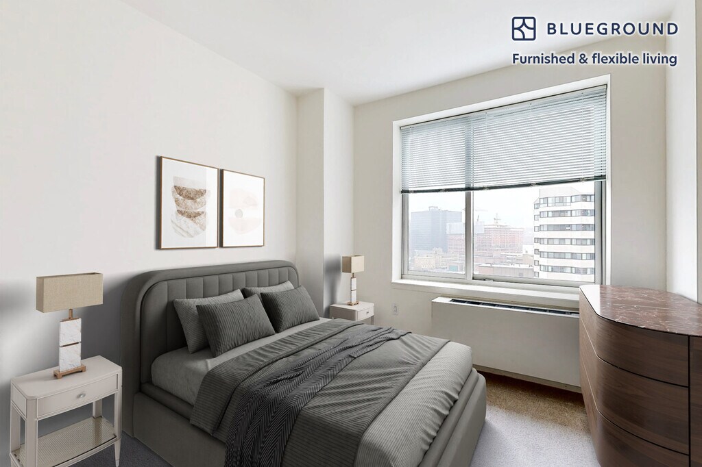 Staged photos of matching layout and similar décor Imagery shows same floorplan and building, and similar décor as we finish photographing this new unit. Be the first to rent! Discover the best of White Plains, with this one bedroom apartment in White Plains. It’ll be easy to simply show up and start living in this furnished apartment with its fully equipped kitchen, living room, and our dedicated, on-the-ground support. (ID #NYC2300A) The advertised rate of $3,290/month is the lowest available price, based on a 12 month(s) and 29 day(s) stay with a move-in date of April 30, 2026. Rates vary depending on the duration of stay, season, and other parameters. For exact pricing and additional pricing components, please visit our website and enter your desired move-in and move-out dates. The rate is applicable when billed upfront; it can be higher if billed in multiple payments. Brokers are welcome to reach out. Were you looking for an unfurnished lease? Try Blueground instead and upgrade from unfurnished to furnished living: - Furnished at rates comparable to unfurnished - No setup or furniture costs - save thousands - Move-in ready - save time, just bring your suitcase Designed with you in mind As with any Blueground apartment, you’ll find a thoughtfully designed space complete with beautiful furniture and a fully equipped kitchen in this one bedroom property. And, thanks to our superior quality mattresses, luxury linens, and towels, you can relax knowing you’ll always feel comfortably at home. When you’re ready for some fun, you can take in the White Plains vibes or bring the entertainment to you with the premium wireless speaker or smart TV. This apartment also offers in-apartment laundry. Amenities Building amenities unique to this one bedroom apartment include an on-site: - Dryer - Elevator - Washing machine - Parking - Pets allowed Arrival and ongoing support The entire apartment is yours to enjoy! Throughout your stay, you’ll have access to our Client Experience team through the Blueground App. You can schedule additional cleanings, submit maintenance requests, and view our neighborhood recommendations with just a few taps. We’ll share all details upon confirmation of your stay. Other things to note Photos show same floorplan and building, and similar decor as we finish photographing this new apartment. This Blueground apartment has flexible lease options, allowing you to book it for one month, a year, or more. Pets are welcome, though weight limits and breed restrictions apply and may incur fees. Parking is offered based on availability and is subject to a fee. Brokes CYOF. We take great pride in ensuring every photo displayed is shot in our own units with our actual furnishings. That said, we regularly refresh our decor and furniture arrangement, which may differ from what’s pictured. [SI]