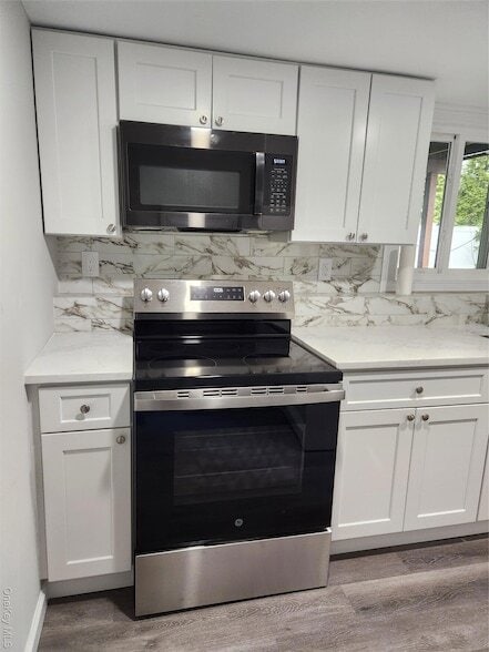 Newly constructed apartment with laminate flooring throughout. The private entrance takes you into the spacious living room with a wall of windows and a double-door closet. The new kitchen offers Granite countertops and backsplash. New Stainless Steel Oven/Range and Refrigerator. The designer's full bathroom has a large shower with marble walls and a glass door. The Bedroom has laminate flooring, a large window, and a closet. All utilities are included except for cable and phone. You have parking for two cars in the private driveway. The property is at the end of a quiet cul-de-sac and close to the park, stores, school, shopping, transportation, and major roadways. The tenant is required to obtain tenant insurance and 1 month of security. They can fill out the application on There is a $20.00 application charge per tenant.