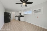 AVAILABLE NOW! This updated 284 sqft cozy efficiency is ready for the next tenant. Bring your surfboard because this property is on a 3-minute (750 feet) walk to the ocean. Pets are welcome, as there is no carpet. The new kitchen features granite counters, black appliances, and soft-close white shaker cabinets. A new wall AC system with improved attic insulation should help reduce the electricity bill. A new electric tankless water heater means you will never run out of hot water. Less than a mile from the Spessard Holland Golf Course. No property manager, so you deal directly with the property owner. Noise proofing has been added to the wall between units to improve privacy. This property features new Luxury Vinyl Plank floors, an impact-rated window, a large walk-in closet, and a tiled shower. No iron pipes, as this property includes updated sewer and water lines, as well as updated electrical. Water is an extra $40 per month, and lawn care is included in the rent.