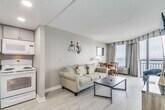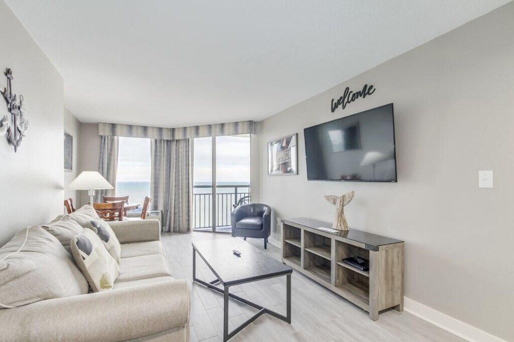 Sun-filled and ocean-front, this modern and spacious condo at Patricia Grand Resort offers a romantic getaway with breathtaking views of Grand Strand Beach. The 1-bedroom, 1-bath unit features a master bedroom with a king-size bed and a private balcony accessible from both the living room and bedroom, providing stunning ocean views. As part of the Patricia Grand Resort, enjoy full access to all resort amenities, including oceanfront swimming pools and a lazy river. The condo includes a full kitchen equipped with full-size appliances such as a stove, refrigerator, microwave, toaster, and coffee maker, along with all necessary utensils and cookware. This oceanfront vacation rental is perfect for a Myrtle Beach escape, comfortably sleeping four guests. Parking is conveniently located across the street with a limit of one car per unit. Located in the heart of Myrtle Beach, the condo is close to popular attractions such as the Myrtle Beach Sky Wheel, Myrtle Waves Water Park, and Family Kingdom Amusement Park. Enjoy easy access to local entertainment and dining options, making it an ideal vacation spot. Coastline Pest Control performs mandatory preventative treatments in every unit on the third Tuesday of each month. Grilling is prohibited, with a $200 fine for violations. Smoking is not allowed in the unit or on the balcony, with a $250 fine plus cleaning costs for violations. Pets are not permitted, with a $200 fine for violations. Gatherings of more than four people, including overnight guests and visitors, are not allowed and may result in eviction. House parties and illegal substances are strictly prohibited and grounds for immediate eviction. Guests must be at least 21 years old to book this property. Late check-out penalties start at $500. The unit features upgraded internet, perfect for working remotely from the beach with speeds of 200mbs/20mbs. [SI]