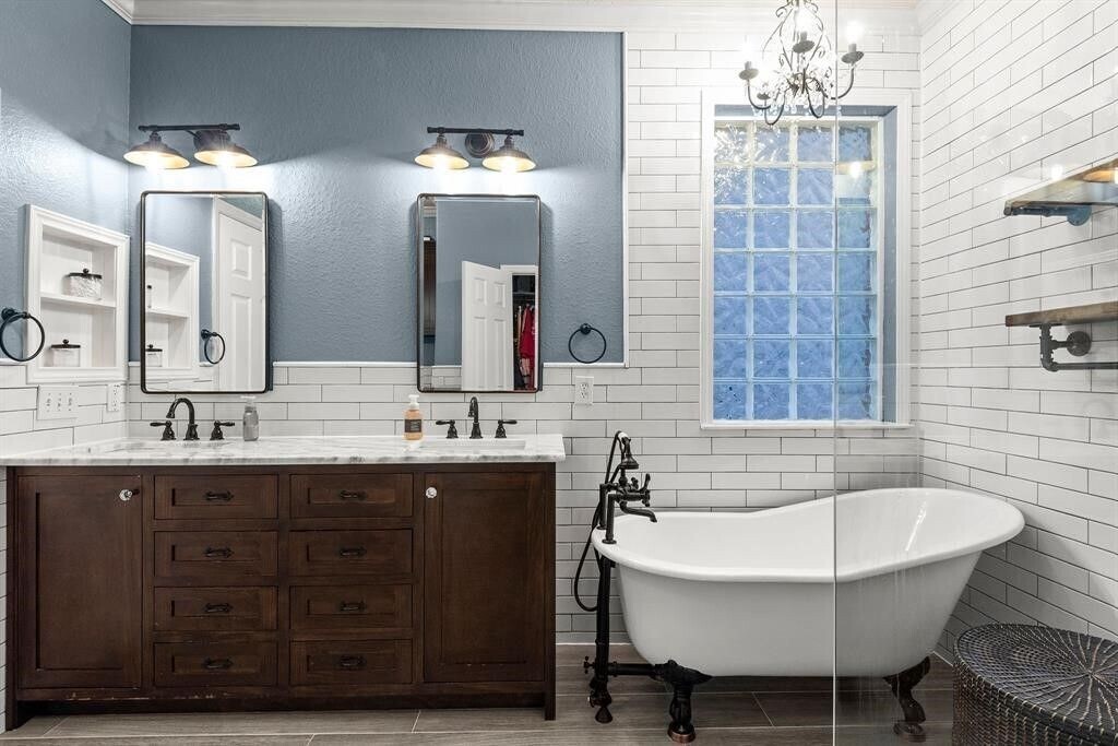 This home sits on a large corner lot and is conveniently located within walking distance from Glen York Elementary school, McNair Junior High, and very close to Shadow Creek High School. Loads of upgrades in this gorgeous home include hardwood floors throughout, crown molding, built-in surround sound speakers, beautifully renovated bathrooms (2020), granite countertops, a large stainless farmhouse sink (2022), a double-sided wood-burning fireplace between two living room areas, a private home office. In addition, you have a spacious two-car attached garage, a new roof (2018), back patio with no neighbors behind- perfect for entertaining or quiet family gatherings.