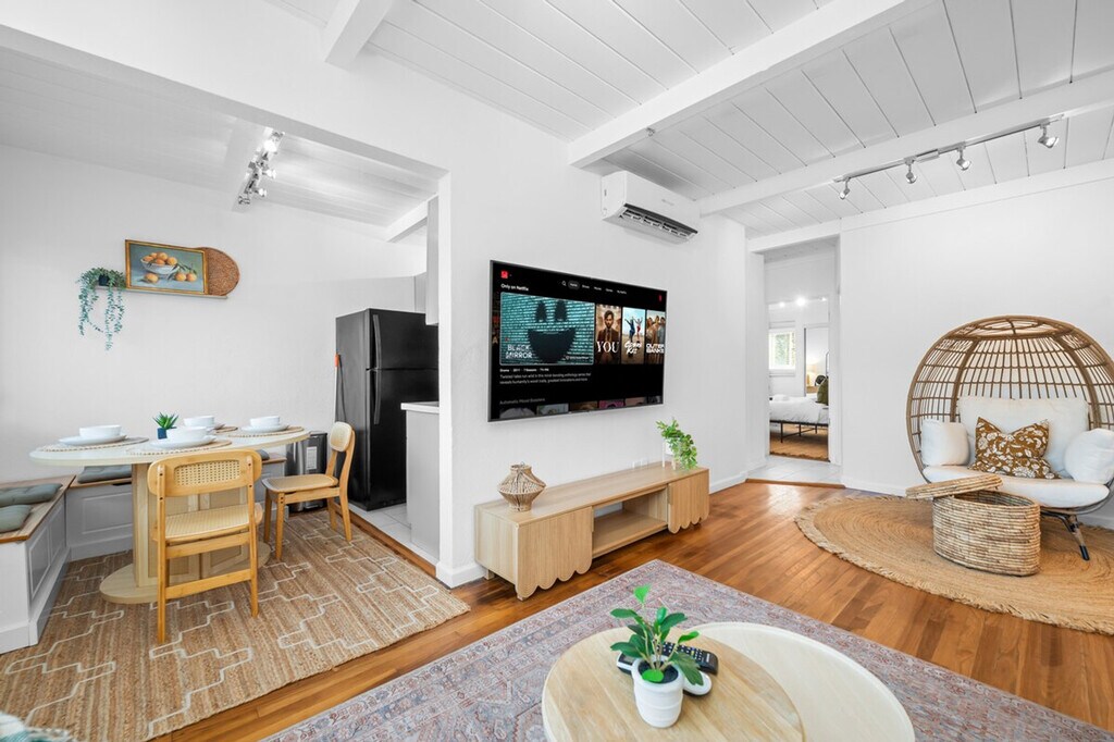 Feel at home in this private Grant Hill sanctuary, perfectly positioned near the heart of San Diego. This unique, detached home offers total privacy with no shared walls, making it ideal for families and remote work-friendly professionals. This standalone home offers a peaceful and private experience. The primary bedroom features a plush queen bed with high-thread-count linens and extra pillows. The second bedroom is perfect for families or friends, featuring a versatile daybed with a pull-out twin trundle, providing two twin beds. Both rooms are equipped with blackout shades and blinds, fans, and spacious closets stocked with extra linens. The full-sized kitchen is equipped with a premium 5-burner gas stove and oven, a full-size refrigerator with freezer, a toaster, and a Keurig coffee station. It is fully equipped with a professional knife set, cooking utensils, plates, and silver for up to 4 guests. Relax in the bright, open living space with a 70-inch smart TV and a stylish egg chair. Stay comfortable year-round with a powerful AC/heating split unit. One free designated parking spot is included, located behind the rear gate. Located within a secure, gated complex, this apartment is steps away from a grocery store and a local-favorite taco truck. Reach the San Diego Zoo, Convention Center, and Downtown Gaslamp Quarter in just 5–15 minutes. Experience seamless streaming and lag-free video calls with 300 Mbps+ high-speed internet, perfect for remote work. The complex features gated front and back entrances with 24/7 exterior surveillance. The plumbing systems are sensitive; please do not flush any paper products except toilet paper. A dedicated bin is provided for disposal. Registration Number: STR-12804L, 655104 [SI]