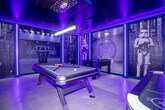 Indulge in the epitome of opulence at this ultra-luxury home, meticulously adorned with lavish decor. Experience boundless entertainment with a Star Wars-themed game room and a charming Mickey-themed home theater. Retreat to uniquely themed bedrooms - Frozen and Toy Story - for a whimsical slumber. Unwind in your private pool in the expansively spacious outdoor area. Situated in Storey Lake, a mere 10-minute drive from Disney parks, this haven offers an unrivaled location. Revel in a plethora of amenities for family fun, including a dynamic pool complex and much more! Step into the realm of luxury at this sprawling 6-bedroom, 6-bathroom haven, an embodiment of exquisite design. Lavish decor graces every corner of this abode, promising an indulgent experience. Enter a spacious living room, adorned with a cozy fireplace, seamlessly merging into the fully equipped kitchen, a chic dining room, and an opulent design room. Step outside to the expansive patio, where a private heatable pool awaits, inviting relaxation. Venture into the captivating Star Wars-themed game room, a realm of endless entertainment. On the first floor, a king bedroom suite beckons, offering convenience and privacy. Ascend to the second floor, where the magic unfolds. An enchanting Mickey-themed home theater promises family fun. The luxurious master king suite indulges in opulence, accompanied by another king bedroom. Themed bedrooms enchant with Frozen's charm, offering two single beds, and Toy Story's excitement, boasting a bunk bed with a double and single bed. Another bedroom offers two single beds, ensuring ample space for everyone. The comfort of a laundry room with washer and dryer stands ready, while free Wi-Fi, complimentary parking, and a thoughtful welcome kit ensure your convenience. Replenishment of bathroom and kitchen amenities is the guest's responsibility. Heating the pool is a paid service and there is also a fee charged to use the barbecue grill. Storey Lake Resort has the perfect location just 10 minutes from all major attractions and theme parks in Orlando, including Walt Disney World, Universal Resort, and Sea World. You will find fantastic resort amenities for the whole family to enjoy with a tiki bar, a resort-style pool with slides and lazy river, sports court, mini-golf, kayak, and fitness center. There are two clubs inside the property, one of them with a themed pirate pool that kids will love, just walking distance from the house. Located just off Osceola Parkway, the resort has easy access to restaurants, shopping, and supermarkets, all within a 5-minute drive. Quiet hours are between 22:00 and 8:00.