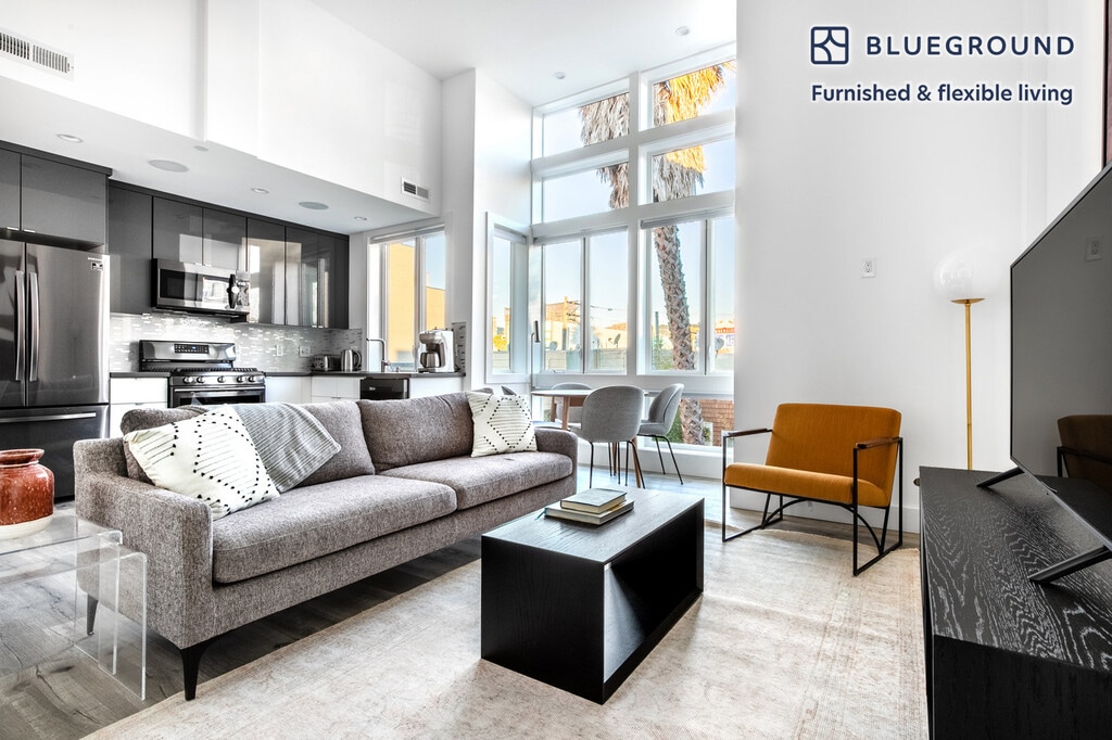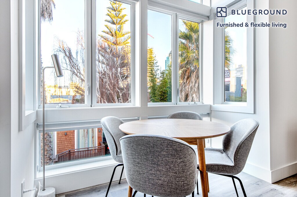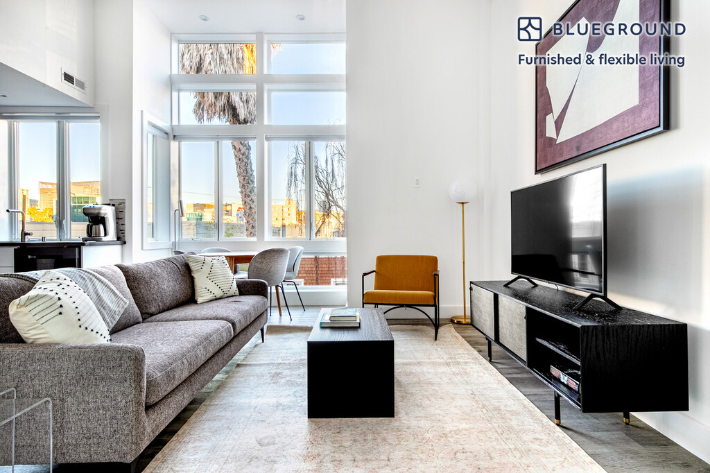 Show up and start living from day one in San Francisco with this lovely one bedroom Blueground loft. You’ll love coming home to this thoughtfully furnished, beautifully designed, and fully equipped SoMa home. (ID #SFO455) The advertised rate of $4,430/month is the lowest available price, based on a 1 month(s) and 27 day(s) stay with a move-in date of November 13, 2025. If you’re looking for a 1-year stay, the rate is $5,580/month. Rates vary depending on the duration of stay, season, and other parameters. For exact pricing and additional pricing components, please visit our website and enter your desired move-in and move-out dates. The rate is applicable when billed upfront; it can be higher if billed in multiple payments. Brokers are welcome to reach out. Were you looking for an unfurnished lease? Try Blueground instead and upgrade from unfurnished to furnished living: - Furnished at rates comparable to unfurnished - No setup or furniture costs - save thousands - Move-in ready - save time, just bring your suitcase Designed with you in mind Thoughtfully designed with bespoke finishes, modern furnishings, and a fully equipped kitchen, you’ll enjoy that “I’m home” feeling with this Blueground loft. Whether you’re lounging in your charming living room streaming the latest and greatest entertainment on the smart TV or premium wireless speaker, or getting some well-earned rest on the superior quality mattress with luxury linens, you’ll fall in love with everything this SoMa loft has to offer. This loft also offers in-loft laundry. Sleeping arrangements King Bed, 70.8in/180cm Amenities Building amenities unique to this one bedroom loft include an on-site: - Dryer - Washing machine Arrival and ongoing support The entire loft is yours to enjoy! Throughout your stay, you’ll have access to our Client Experience team through the Blueground App. You can schedule additional cleanings, submit maintenance requests, and view our neighborhood recommendations with just a few taps. We’ll share all details upon confirmation of your stay. Ideally Located This furnished apartment is located in South of Market, known as SoMa. A trendy, urban district, famous for its excellent art and museum scene. Home to a diverse mix of entrepreneurs and young families, this neighborhood offers hip bars, fine dinings and delicious coffee. Don’t miss the plethora of museums, including a visit to the San Francisco Modern Museum of Art. Baseball lovers frequently visit SoMa, as it is also home to the San Francisco Giants. Other things to note This Blueground loft has flexible lease options, allowing you to book it for one month, a year, or more. Please keep in mind that this is a walk up building. We take great pride in ensuring every photo displayed is shot in our own units with our actual furnishings. That said, we regularly refresh our decor and furniture arrangement, which may differ from what’s pictured. Also note - This apartment is located on a narrow street - There have been reported instances of homeless populations nearby