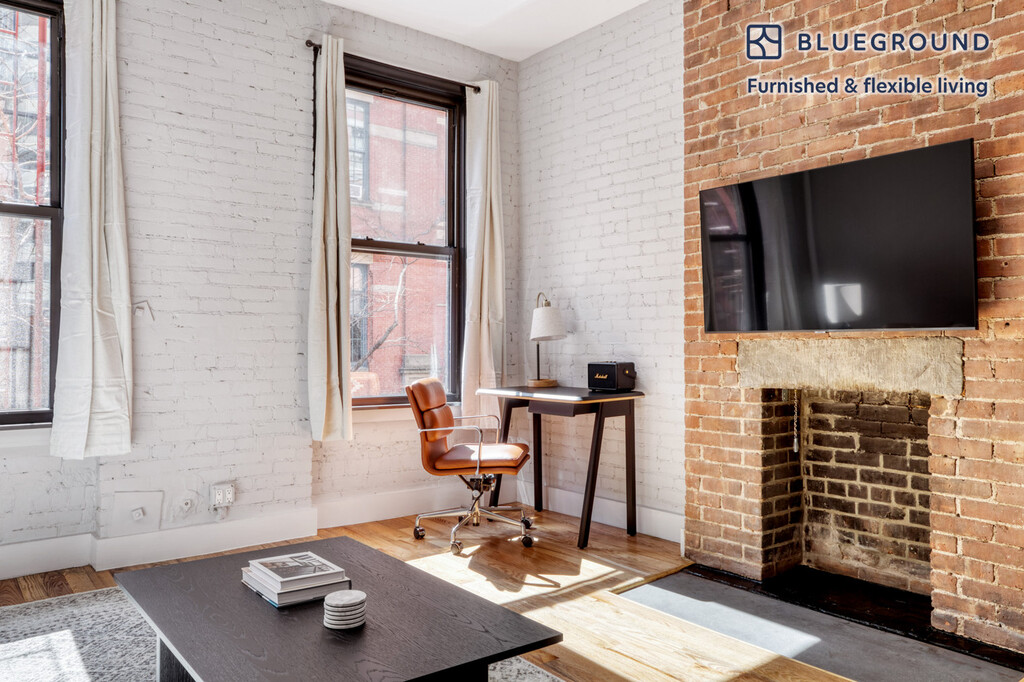 Feel at home wherever you choose to live with Blueground. You’ll love this sophisticated West Village furnished one bedroom apartment with its modern decor, fully equipped kitchen, and spacious living room. Ideally located, you’re close to all the best that New York has to offer! (ID #NYC1105) The advertised rate of $5,540/month is the lowest available price, based on a 9 month(s) and 20 day(s) stay with a move-in date of August 11, 2026. Rates vary depending on the duration of stay, season, and other parameters. For exact pricing and additional pricing components, please visit our website and enter your desired move-in and move-out dates. The rate is applicable when billed upfront; it can be higher if billed in multiple payments. Brokers are welcome to reach out. Were you looking for an unfurnished lease? Try Blueground instead and upgrade from unfurnished to furnished living: - Furnished at rates comparable to unfurnished - No setup or furniture costs - save thousands - Move-in ready - save time, just bring your suitcase Designed with you in mind As with any Blueground apartment, you’ll find a thoughtfully designed space complete with beautiful furniture and a fully equipped kitchen in this one bedroom property. And, thanks to our superior quality mattresses, luxury linens, and towels, you can relax knowing you’ll always feel comfortably at home. When you’re ready for some fun, you can take in the New York vibes or bring the entertainment to you with the premium wireless speaker or smart TV. This apartment also offers in-apartment laundry. Sleeping arrangements Queen Bed, 63in/160cm Amenities Building amenities unique to this one bedroom apartment include an on-site: - Dryer - Washing machine - Pets allowed Arrival and ongoing support The entire apartment is yours to enjoy! Throughout your stay, you’ll have access to our Client Experience team through the Blueground App. You can schedule additional cleanings, submit maintenance requests, and view our neighborhood recommendations with just a few taps. We’ll share all details upon confirmation of your stay. Ideally Located This furnished rental is located in the West Village. Cute storefronts and some cobblestone streets give the charming neighborhood the feel of a quaint small town. Populated with shoppers, diners and art lovers. The historically artistic area has numerous piano bars, cabarets, and theaters to discover. Both Times Square and Wall Street are just 15 minutes away by subway. Other things to note This Blueground apartment has flexible lease options, allowing you to book it for one month, a year, or more. Pets are welcome, though weight limits and breed restrictions apply and may incur fees. Please keep in mind that this is a walk up building. Brokes CYOF. We take great pride in ensuring every photo displayed is shot in our own units with our actual furnishings. That said, we regularly refresh our decor and furniture arrangement, which may differ from what’s pictured. [SI]
