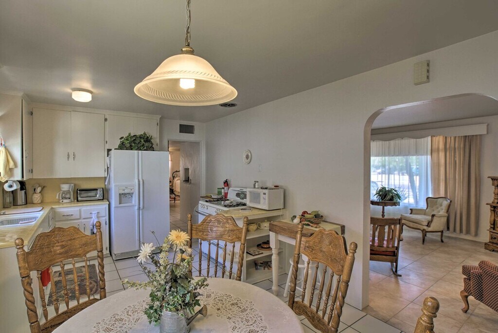 Capture the essence of Phoenix at this vacation rental in the Willo Historic District! Feel at home in this 2-bedroom, 1-bathroom home. This 1,125-square-foot home is well appointed with a fully equipped kitchen, a 50-inch flat-screen TV, plush furnishings, a Keurig coffee machine, cooking essentials, a water cooler, on-site washer/dryer, linens/towels, free Wi-Fi, and central air conditioning. This property is pet friendly with a $50 fee for one dog only (max 20 lbs). All of Phoenix is at your fingertips at this centrally located home, perfect for a family getaway, extended stay, or a couple's retreat to the Valley of the Sun! Situated in the heart of Phoenix, this property is just 2.2 miles from Comerica Theatre, 2.7 miles from Talking Stick Resort Arena, 2.9 miles from Chase Field, and only a short drive away from Scottsdale area attractions. Exterior security cameras are around the perimeter, facing out, but they do not look into any interior spaces. This home is a historic property protected by the city and cannot be changed, only restored; with that being said, everything is in working order. [SI]