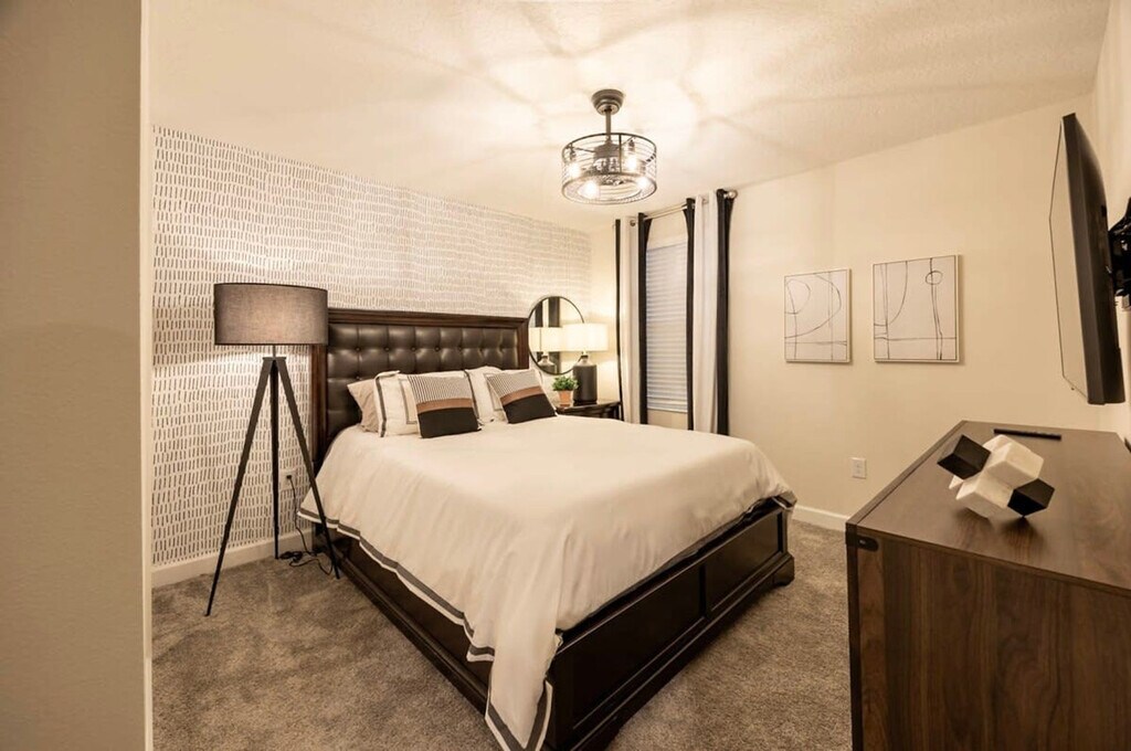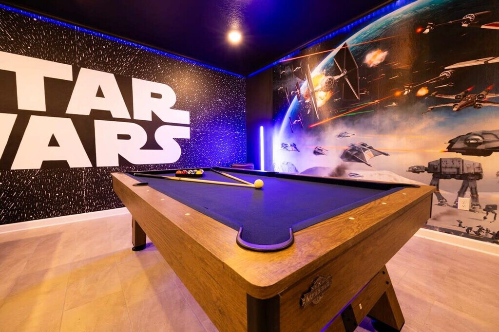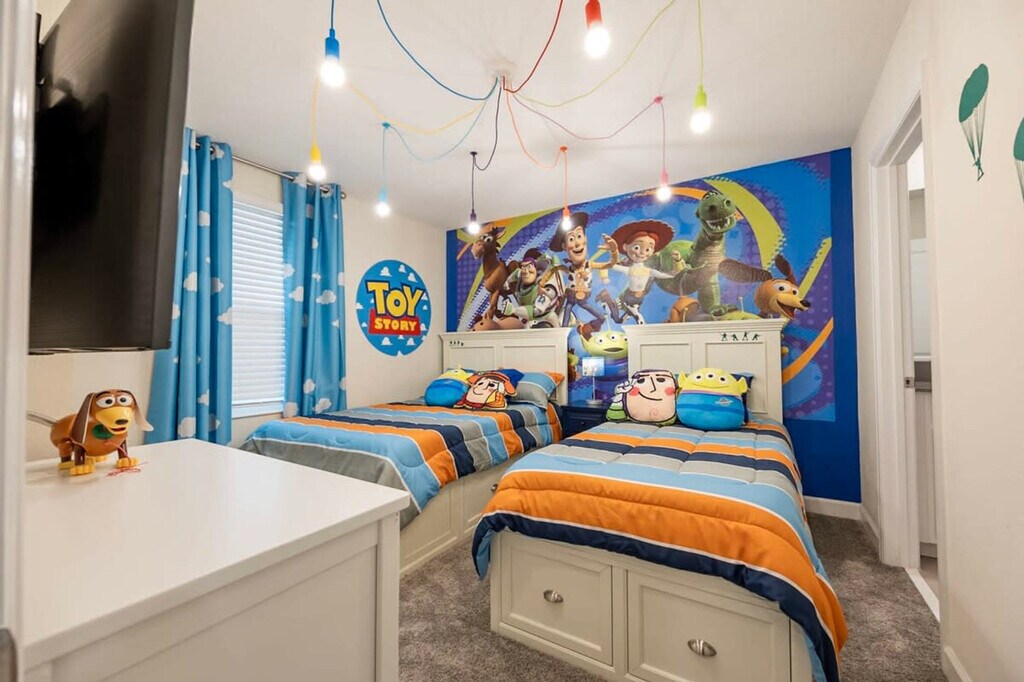 Feel at home in our brand new family-friendly 6-bedroom home located in the incredible Storey Lake Resort, Kissimmee. This spacious residence offers easy access to Disneyworld and convenient routes to Universal and Sea World parks, making it an ideal choice for family vacations. Please note, this home is not suitable for parties. This beautiful home in The Hideaway Club at Storey Lake Resort is perfect for celebrating milestones or enjoying a relaxing vacation with family and friends. It features impressive theme room decor, a large theatre room for hours of fun, and a covered patio with views of the resort clubhouse. Relax with a refreshing dip in the pool and spa, and enjoy everything this unique home and upscale community amenities have to offer. Our grill is available for a one-time rental fee which includes one propane tank. Pool and spa heating is available for an additional fee of $45 per night, with a minimum three-night charge. Please contact our customer agents after your reservation is confirmed to request pool and spa heating. Located in Kissimmee, this home offers easy access to nearby restaurants and attractions. It's a perfect home base for exploring Central Florida and enjoying the excitement of Orlando. Quiet hours are after 10:00 pm. Only guests 25 years or older are allowed unless accompanied by a responsible adult. No parties or events are permitted, and only registered guests can stay overnight. Vehicles parked in violation of parking rules are subject to immediate towing. Charcoal grills are strictly prohibited, and usage may lead to a fine of up to $500 and eviction. Our pool and spa heating system may not function optimally in extremely cold weather conditions, and the temperature of the spillover spa can fluctuate depending on outdoor conditions. [SI]