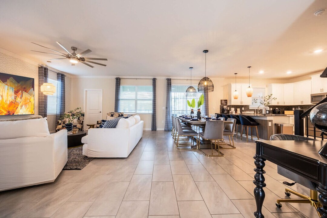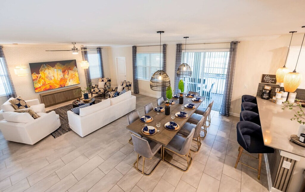The advertised rate of $4,064/month is the lowest available price, based on a 30 day(s) stay with a move-in date of May 3, 2026. Rates vary depending on the duration of stay, season, and other parameters. For exact pricing and additional pricing components, please visit our website and enter your desired move-in and move-out dates. The rate is applicable when billed upfront; it can be higher if billed in multiple payments. Feel at home in this family-friendly 6-bedroom home located in the Storey Lake Resort, within minutes of restaurants and attractions in Kissimmee. This home offers easy access to Disneyworld and convenient access to Universal and Sea World parks. This beautifully furnished home features impressive theme room decor and a large theatre room for hours of fun. The layout includes a game room, living room, kitchen, dining room, and laundry room. Relax with a refreshing dip in the pool and spa and enjoy everything this unique home and Central Florida has to offer. Pool and spa heating is available for an additional $45 per night with a minimum of three nights. Pets are welcome with a fee of $150 per pet per stay; weight restrictions apply. Ideally located near the resort clubhouse, which is viewable from the covered patio, this home is a perfect base to bring your family and group together for some fun and excitement in Orlando. Quiet hours start after 10:00 pm. Guests must be 25+ years old unless accompanied by a responsible adult. No parties or events are allowed. Only registered guests may stay overnight; a list must be sent prior to check-in. Vehicles parked in violation of parking rules may be towed immediately. Charcoal grills are strictly prohibited due to fire hazards; only propane grills are permitted, and using charcoal grills may result in a fine of up to $500 and eviction. [SI]
