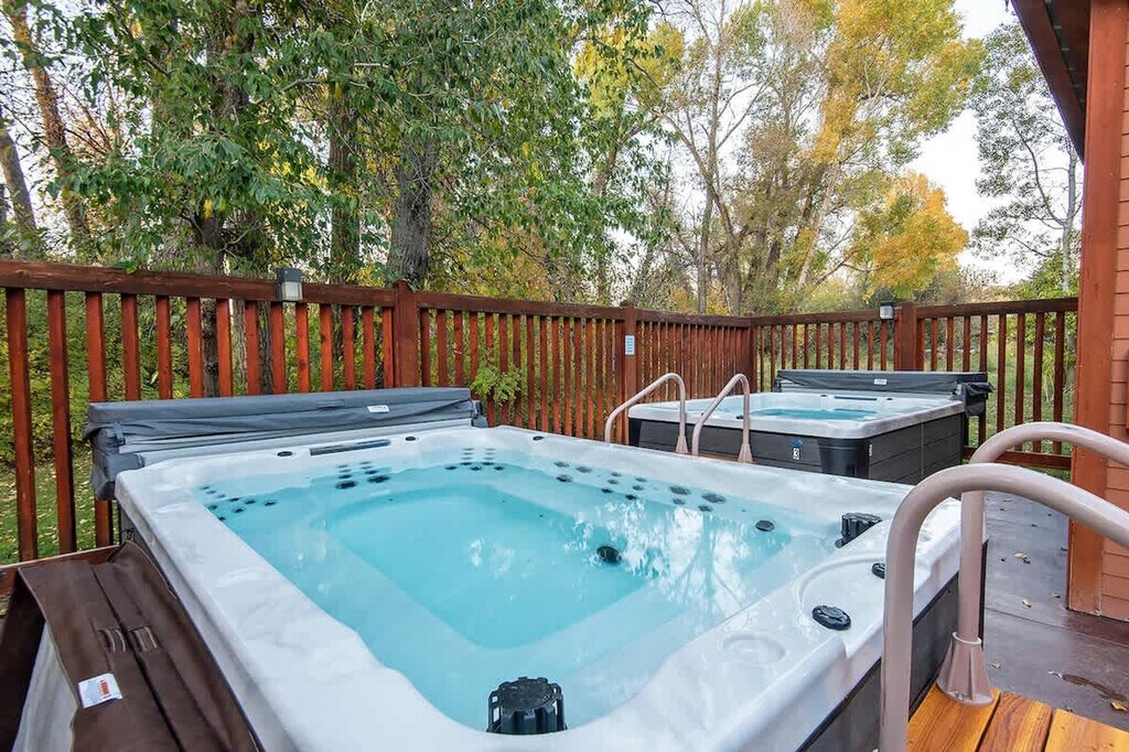 Experience the serenity of the Tetons with this delightful condo nestled at the base of the mountains in the coveted Teton Creek Resort. The resort, boasting three community hot tubs, is a mere 9 miles from the pristine slopes of Grand Targhee. Plus, with the Targhee shuttle service picking up right at the location, your ski adventures couldn't be more effortless! This ground floor condo at Teton Creek Resort features recent updates to interior furnishing and Smart TVs. The master suite offers a spacious king-size bed and a dedicated en-suite bathroom, while the guest room is furnished with two queen beds. The fully equipped kitchen includes modern appliances and a drip coffee maker, with bar seating for three, perfect for quick breakfasts or evening chats. A dedicated dining area accommodates six, inviting you to relish meals with loved ones. All grills at Teton Creek Resort, including this one, are electric, perfect for that evening cookout. Sink into the plush couch and oversized chair in the living room, adorned with tasteful western accents, and enjoy the warmth and ambiance of a gas fireplace. Proximity is key! This is the nearest condo complex to Grand Targhee Resort. A short 4-mile drive will take you to the heart of downtown Driggs, bustling with exquisite dining options and charming shops. Step out or gaze through the windows to witness an unspoiled view of lush aspens. With a westward orientation, the condo basks in the gentle glow of the afternoon sun, casting a magical, filtered light throughout. Conveniently located between two entrances to Yellowstone National Park, you can access hiking and activities in the Tetons here in Teton Valley, affectionately known as the quiet side of the Tetons. Distances to nearby ski resorts and regional airports make this location ideal for exploring the region. The minimum age of the primary renter is twenty-five years. The number of people at the property should not exceed the maximum sleeping capacity. Quiet hours are from 9 pm to 8 am, and no events, parties, or large gatherings are allowed. No smoking or vaping is permitted in the home or on the decks, and Teton Creek Resort is a no-smoking complex. Smoking is only allowed in the designated outdoor smoking area, adjacent to the Bannock Building parking area. A maximum of two licensed vehicles is allowed in the parking area. No riding snow machines, dirt bikes, or ATVs in the subdivision or at the rental property. Please do not burn candles or incense in the home. No fireworks on the premises. Keep all main entry doors locked when not occupied. Fines will apply for violations, including but not limited to: leaving garbage in the house or litter on grounds, failure to disclose or clean up after pets, smoking in the house or garage, failure to follow house rules and respect posted signs, failure to follow check-out procedure, mistreatment of hot tub, or violations of local laws. A minimum $500 fine applies for smoking or vaping in non-designated areas, violation of house rules, posted signs, laws, or failure to vacate at check-out time. Your mountain retreat awaits. Come, indulge, and make memories. A team is available 24/7 for any urgent needs.