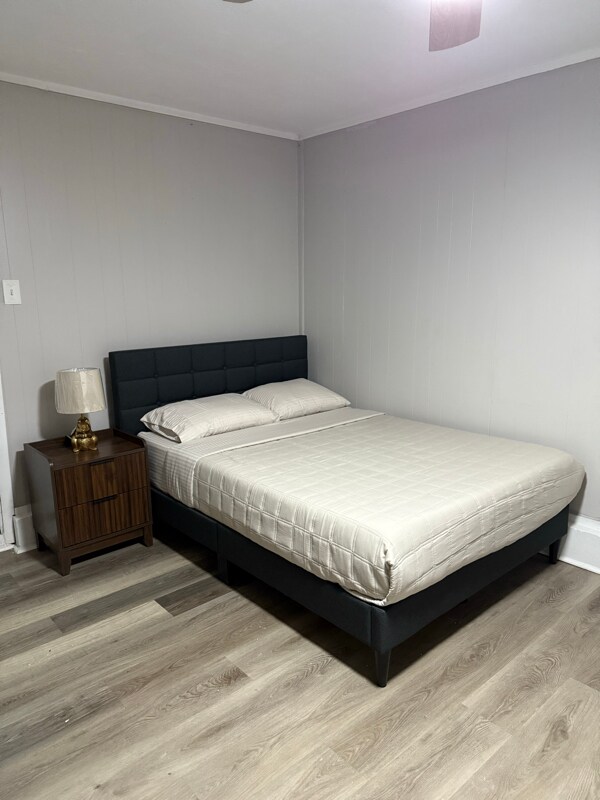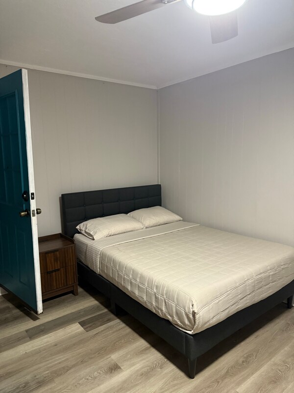 Property Id: 2171109 Entire room, completely renovated , laminate wood floors, with kitchenette and private bathroom, separate entrance from the rest of the property, privacy fence, parking available. Comes completely furnished, full bed, mattress, bedsheets, pillows, duvet. Kitchen includes refrigerator with freezer , sink, singlestove top. Bathroom includes all essentials, garbage bin, shower curtain, soap dispenser, soap holder, etc. Room includes spacious closet, as well as small bar stand with 2 stools for dining.