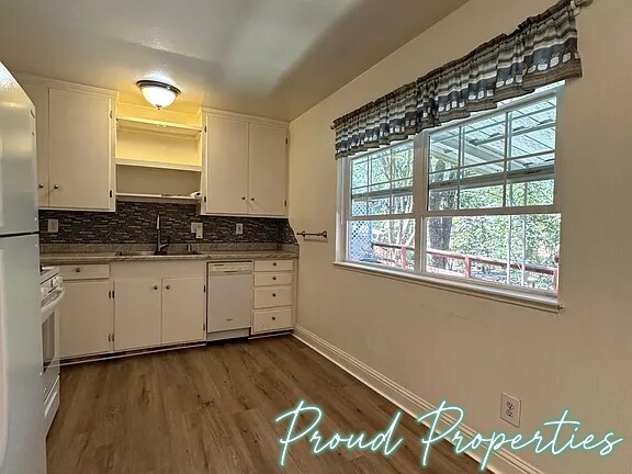 Property Id: 2352464 Charming older duplex home in a quiet neighborhood of single family homes in the City of Placerville. Close to the variety of restaurants and shops in downtown Placerville. Large windows make each room light and airy. New wood-look flooring throughout, dual pane windows, remodeled bath and kitchen. Ceiling fans in each room. Stove, Refrigerator, dishwasher, washer and dryer included. Large laundry/storage room off kitchen. Full wall closets in each bedroom. Carport attached. Small yard with covered patio. One year lease. No animals.. Parking for two cars in driveway and carport. Owner pays for trash collection. Tenant is responsible for all utilities.atio.