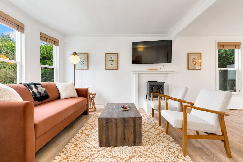 Make this modern, warm, and comfy 2-bedroom, 2-bathroom house your base for an unforgettable Seattle visit. From the gorgeous living area to the private outdoors and snug upper-floor bedrooms, this gem invites you to unwind and immerse yourself in contemporary comfort and enjoyment. The home features steep and narrow stairs leading to the upper floor, which may not be suitable for those with mobility challenges or young children. Step into the open-concept living area, where sophistication meets relaxation. The spacious living room provides an inviting space to unwind after a day of exploration, featuring contemporary furnishings and warm decor. The fully equipped kitchen allows you to prepare meals at home, complemented by a dining area perfect for sharing family meals. The patio offers a delightful setting for al fresco dining with lounge seating and a fire pit. The property offers free street parking for your convenience. Welcome to your tranquil haven in the heart of the Ballard neighborhood of Seattle, known for its tree-lined streets, Scandinavian heritage, and thriving food and arts scene. Explore the famous Ballard Avenue Historic District, trendy boutiques, cozy cafés, and acclaimed restaurants. Nearby attractions include the Hiram M. Chittenden Locks, Carl S. English Jr. Botanical Garden, and the National Nordic Museum. Convenient transportation options include bus, taxi, light rail, Uber, and Lyft, with Seattle-Tacoma International Airport just 30 minutes away. The fireplace is for aesthetics only and should not be used. No pets are allowed, and a $500 fine will be imposed for violations. Parties and events are prohibited, with a potential deep cleaning fee between $500-700 for violations. Outdoor quiet hours are from 10pm to 7am, with a $100 fine per incident for noise violations. Smoking is not allowed, and a $500 deep cleaning fee will apply if smoke debris or smell is identified. Early check-ins and late check-outs are subject to fees and must be approved in advance. Additional cleaning fees may apply for excessive mess or damage. The apartment includes a workspace, allowing you to comfortably work from home with Wi-Fi access. Registration Number: STR-OPLI-25-000145 [SI]