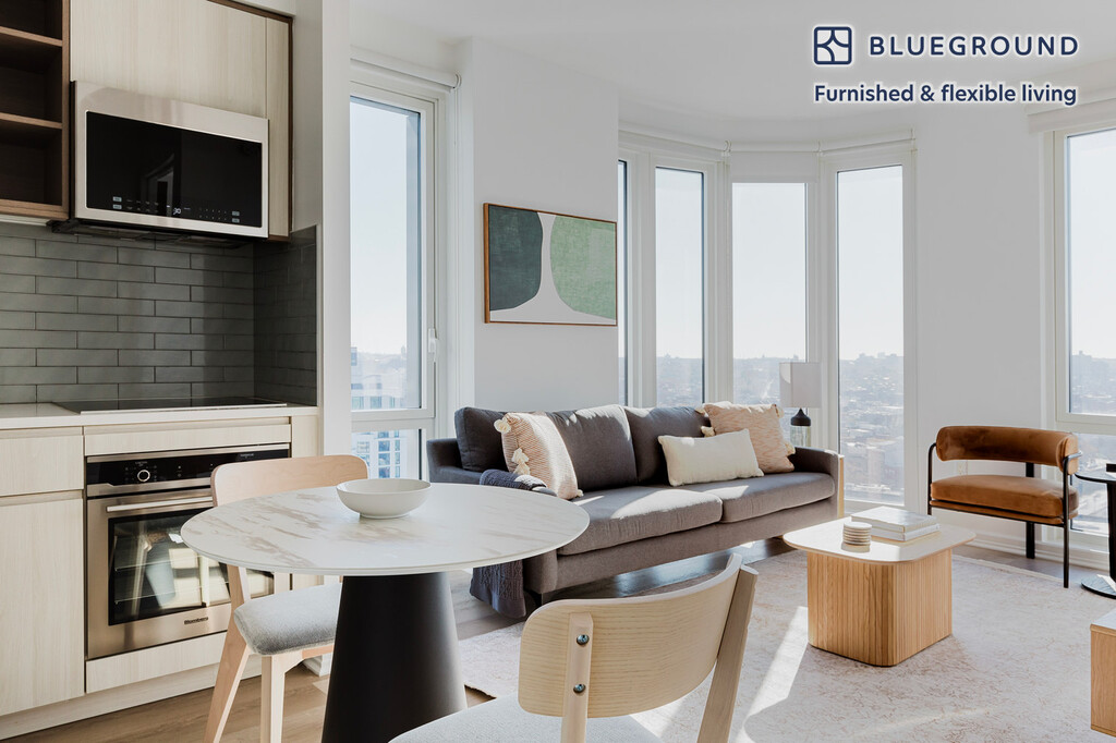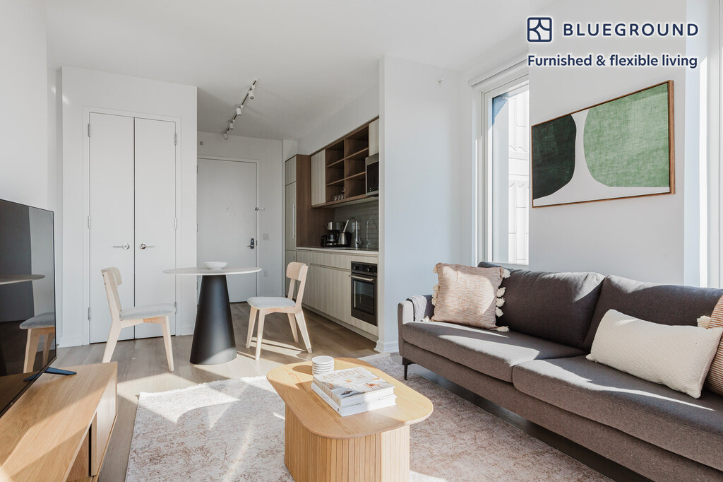 Show up and start living from day one in New York with this spacious one bedroom Blueground apartment. You’ll love coming home to this thoughtfully furnished, beautifully designed, and fully equipped Southside home with stunning high floor views over the city. (ID #NYC1696) The advertised rate of $4,470/month is the lowest available price, based on a 11 month(s) and 29 day(s) stay with a move-in date of January 20, 2026. Rates vary depending on the duration of stay, season, and other parameters. For exact pricing and additional pricing components, please visit our website and enter your desired move-in and move-out dates. The rate is applicable when billed upfront; it can be higher if billed in multiple payments. Brokers are welcome to reach out. Were you looking for an unfurnished lease? Try Blueground instead and upgrade from unfurnished to furnished living: - Furnished at rates comparable to unfurnished - No setup or furniture costs - save thousands - Move-in ready - save time, just bring your suitcase Designed with you in mind Thoughtfully designed with bespoke finishes, modern furnishings, and a fully equipped kitchen, you’ll enjoy that “I’m home” feeling with this Blueground apartment. Whether you’re lounging in your spacious living room streaming the latest and greatest entertainment on the smart TV or premium wireless speaker, or getting some well-earned rest on the superior quality mattress with luxury linens, you’ll fall in love with everything this Southside apartment has to offer. This apartment also offers in-apartment laundry. Sleeping arrangements Queen Bed, 63in/160cm Amenities Building amenities unique to this one bedroom apartment include an on-site: - Basketball Court - Doorman - Dryer - Elevator - Washing machine - Lounge Arrival and ongoing support The entire apartment is yours to enjoy! Throughout your stay, you’ll have access to our Client Experience team through the Blueground App. You can schedule additional cleanings, submit maintenance requests, and view our neighborhood recommendations with just a few taps. We’ll share all details upon confirmation of your stay. Other things to note Building amenities may have an extra cost. This Blueground apartment has flexible lease options, allowing you to book it for one month, a year, or more. Brokes CYOF. We take great pride in ensuring every photo displayed is shot in our own units with our actual furnishings. That said, we regularly refresh our decor and furniture arrangement, which may differ from what’s pictured.