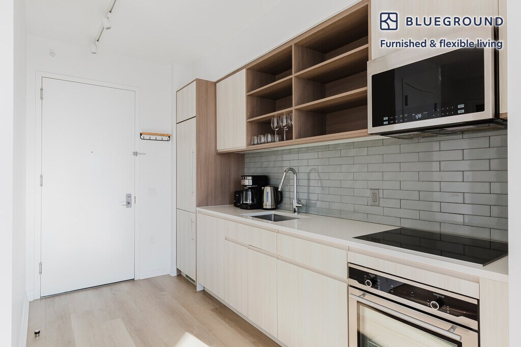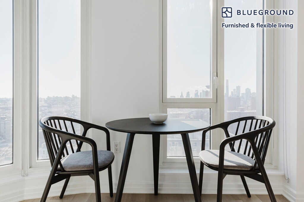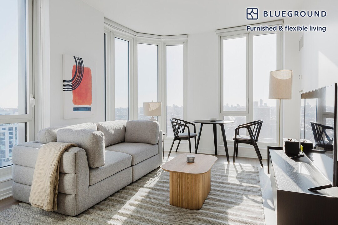 Show up and start living from day one in New York with this sophisticated one bedroom Blueground apartment. You’ll love coming home to this thoughtfully furnished, beautifully designed, and fully equipped Southside home with stunning high floor views over the city. (ID #NYC1697) The advertised rate of $4,830/month is the lowest available price, based on a 12 month(s) stay with a move-in date of June 1, 2026. Rates vary depending on the duration of stay, season, and other parameters. For exact pricing and additional pricing components, please visit our website and enter your desired move-in and move-out dates. The rate is applicable when billed upfront; it can be higher if billed in multiple payments. Brokers are welcome to reach out. Were you looking for an unfurnished lease? Try Blueground instead and upgrade from unfurnished to furnished living: - Furnished at rates comparable to unfurnished - No setup or furniture costs - save thousands - Move-in ready - save time, just bring your suitcase Designed with you in mind As with any Blueground apartment, you’ll find a thoughtfully designed space complete with beautiful furniture and a fully equipped kitchen in this one bedroom property. And, thanks to our superior quality mattresses, luxury linens, and towels, you can relax knowing you’ll always feel comfortably at home. When you’re ready for some fun, you can take in the New York vibes or bring the entertainment to you with the premium wireless speaker or smart TV. This apartment also offers in-apartment laundry. Sleeping arrangements Queen Bed, 63in/160cm Amenities Building amenities unique to this one bedroom apartment include an on-site: - Basketball Court - Doorman - Dryer - Elevator - Washing machine - Lounge Arrival and ongoing support The entire apartment is yours to enjoy! Throughout your stay, you’ll have access to our Client Experience team through the Blueground App. You can schedule additional cleanings, submit maintenance requests, and view our neighborhood recommendations with just a few taps. We’ll share all details upon confirmation of your stay. Other things to note Building amenities may have an extra cost. This Blueground apartment has flexible lease options, allowing you to book it for one month, a year, or more. Brokes CYOF. We take great pride in ensuring every photo displayed is shot in our own units with our actual furnishings. That said, we regularly refresh our decor and furniture arrangement, which may differ from what’s pictured. [SI]